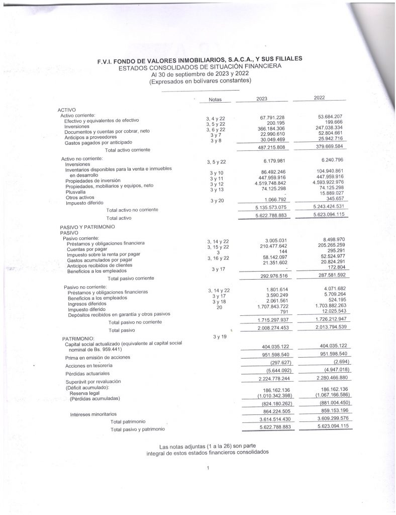 Estados Financieros Consolidados Al 30 de Septiembre de 2023 y 2022 (Estados Consolidados de Situación Financiera, Estados Consolidados de Resultados y Otros Resultados Integrales, Estados Consolidados de Cambios en el Patrimonio y Estados Consolidados de Flujos de Efectivo)