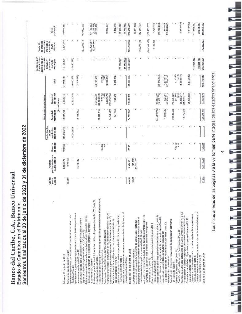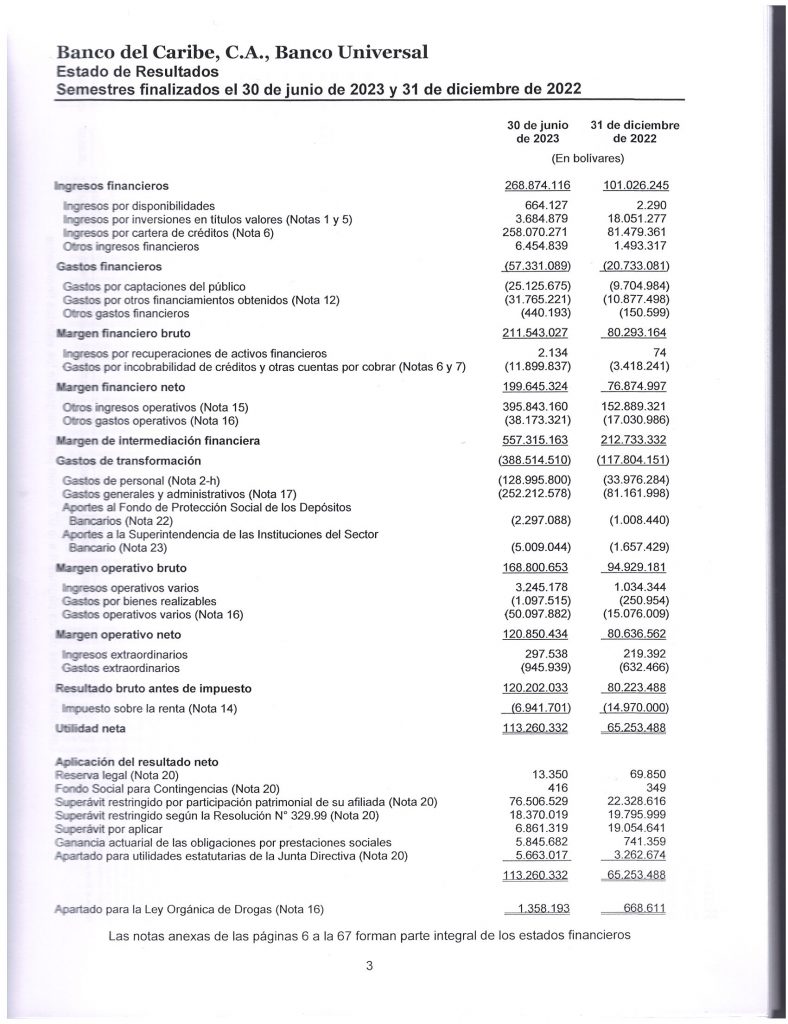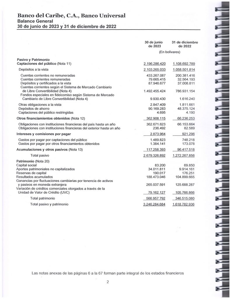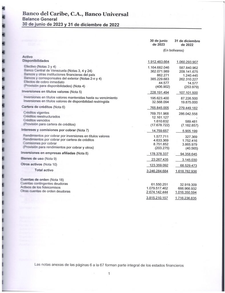 BANCO DEL CARIBE, C.A. BANCO UNIVERSAL INFORMACIÓN FINANCIERA AUDITADA AL 30 DE JUNIO DE 2023 Y 31 DE DICIEMBRE DE 2022