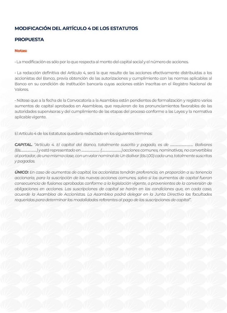 · Aumento de capital, a valor nominal, aprobado por la Asamblea Ordinaria el 18/09/2024, en trámite ante la Superintendencia Nacional de Valores, hasta por un máximo de Bs. 51.583.860,00