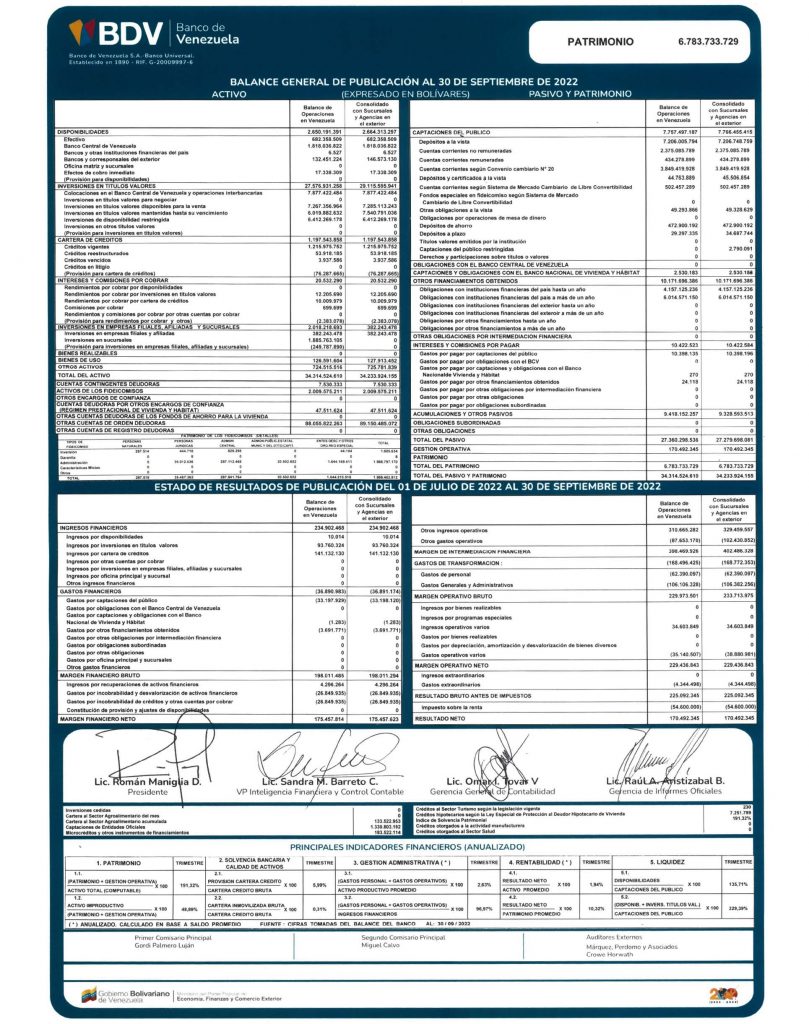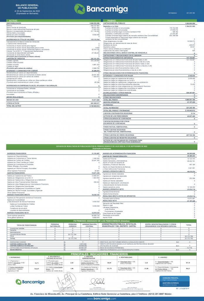 BALANCE DE PUBLICACION BANCO DEL CARIBE Bancaribe Septiembre 2022 by Jose Coluccio on Scribd