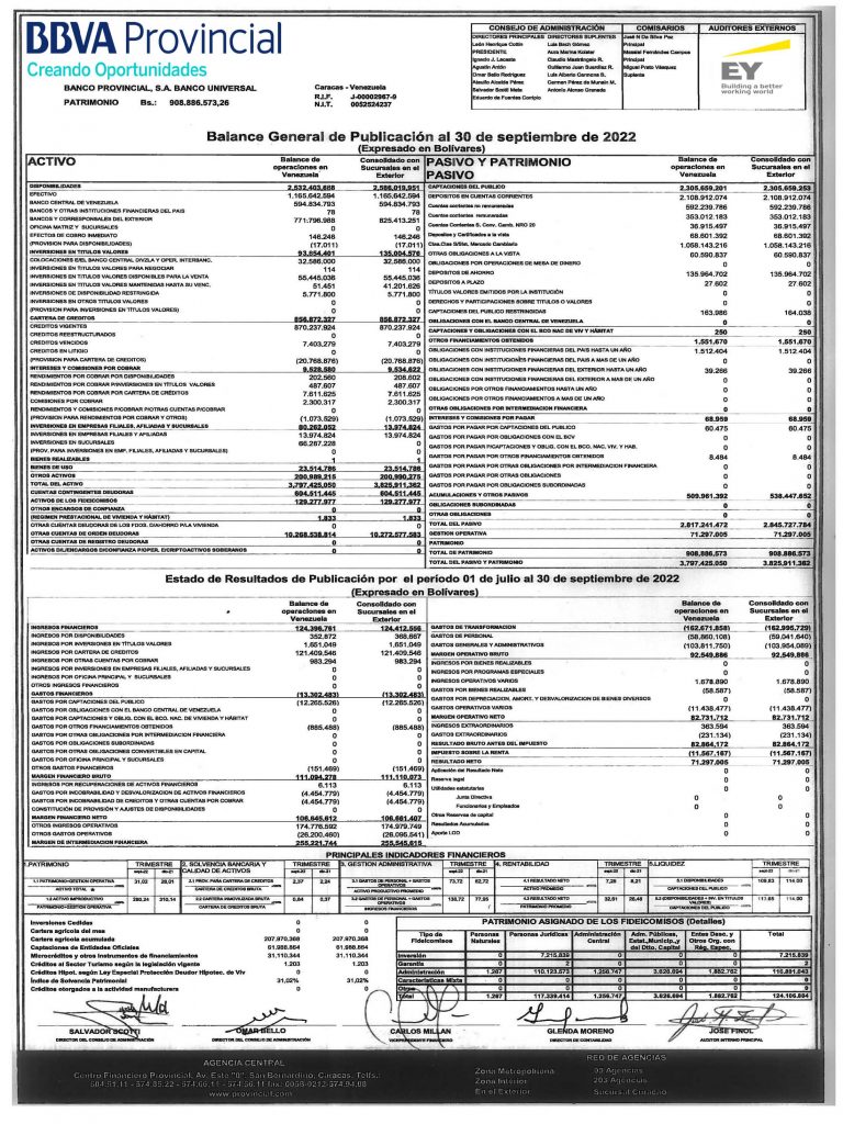Estados Financieros de publicación BANCO PROVINCIAL BANCO UNIVERSAL Septiembre 2022 by Jose Coluccio on Scribd