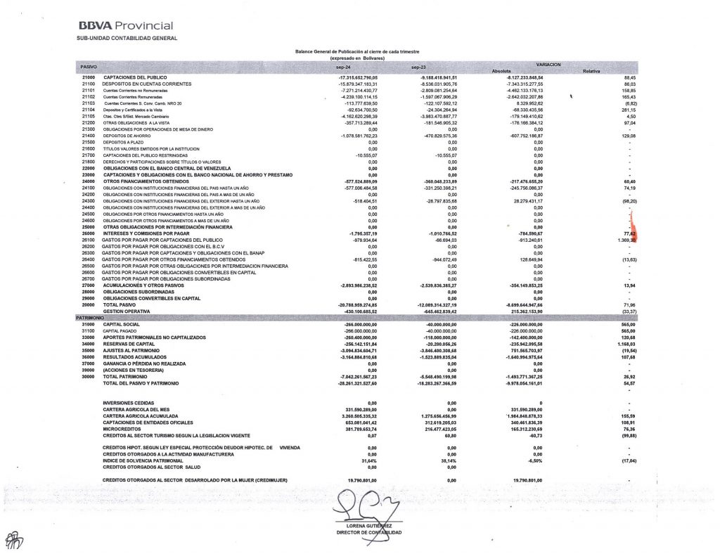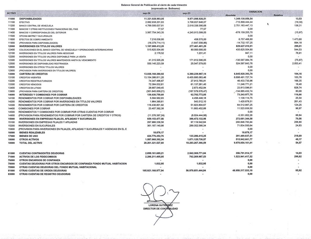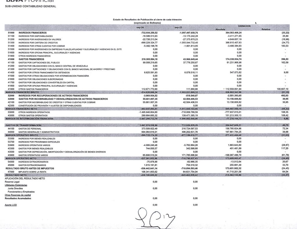 BANCO PROVINCIAL SA BANCO UNIVERSAL INFORMACIÓN FINANCIERA NO AUDITADA SEPTIEMBRE 2024