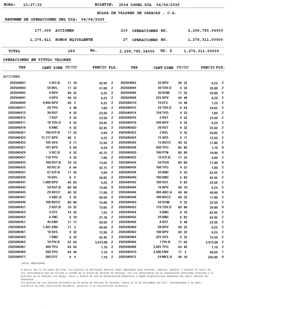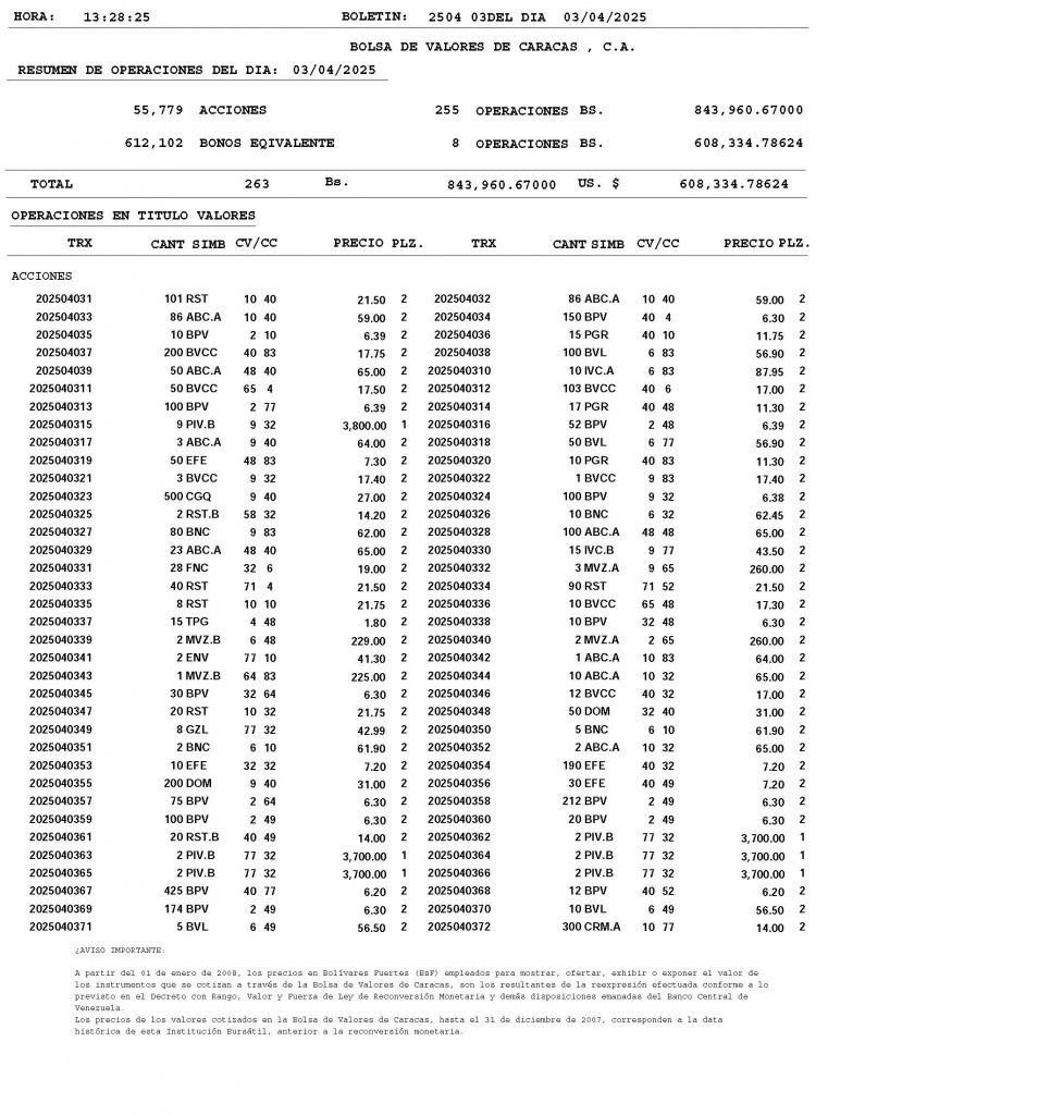 BOLETÍN DE OPERACIONES “03042025 Y 04042025”
