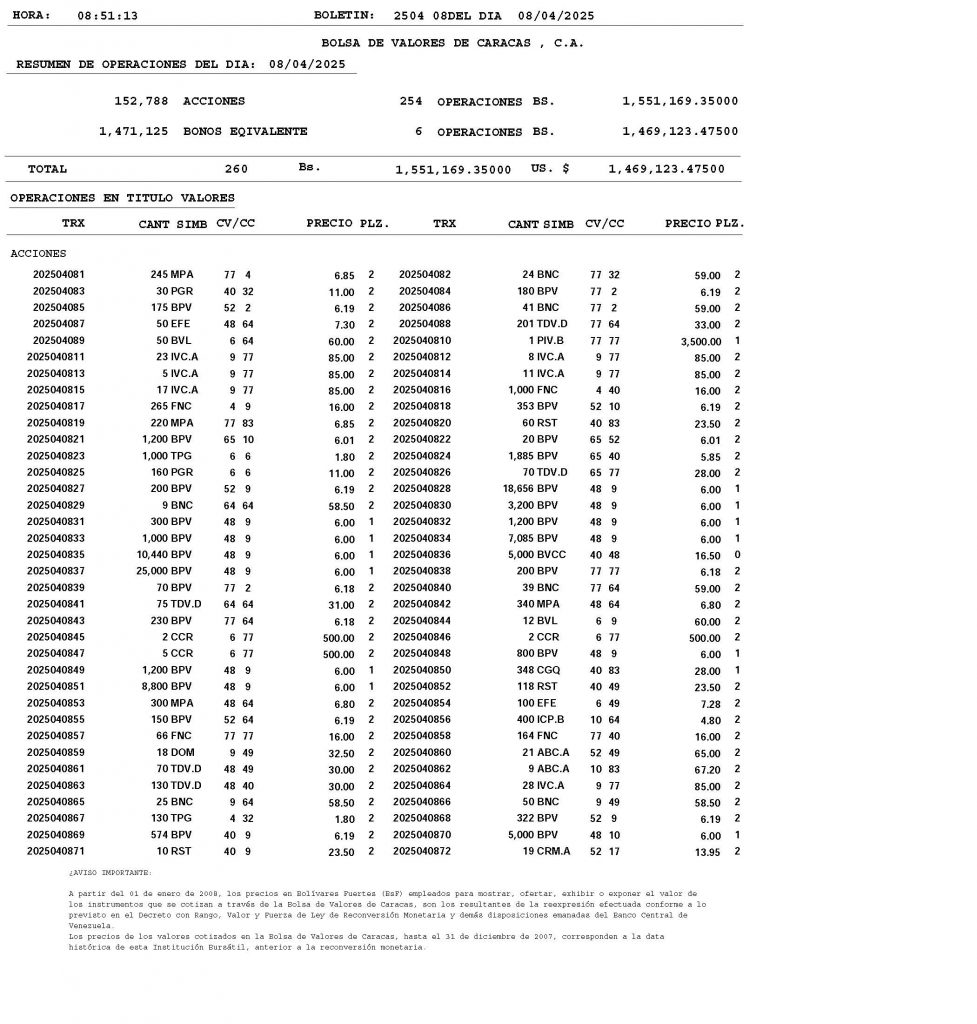 BOLETÍN DE OPERACIONES “07042025 Y 08042025”