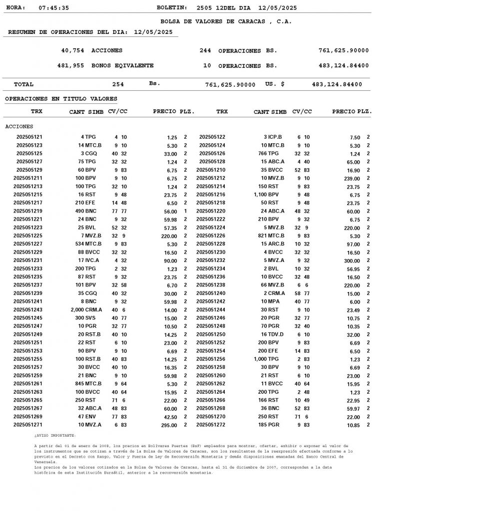 BOLETÍN DE OPERACIONES “ 12052025”