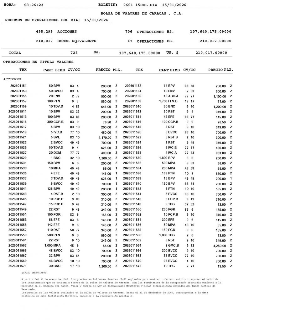 BOLETÍN DE OPERACIONES “15/01/2026”
