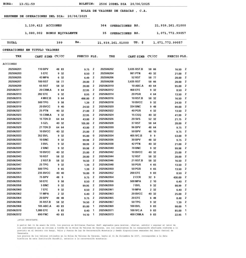 BOLETÍN DE OPERACIONES “ 20/06/2025”