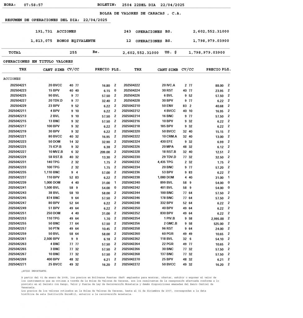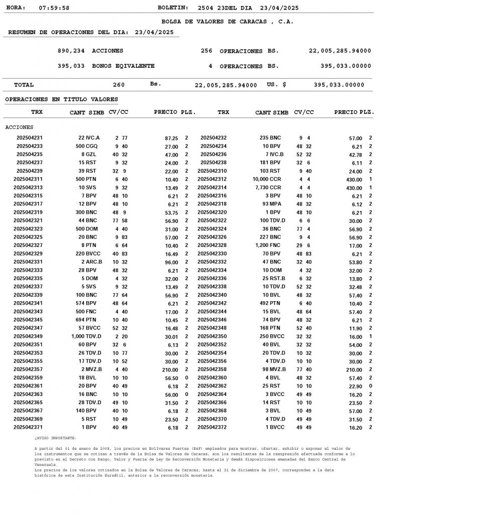 BOLETÍN DE OPERACIONES “22042025 Y 23042025”
