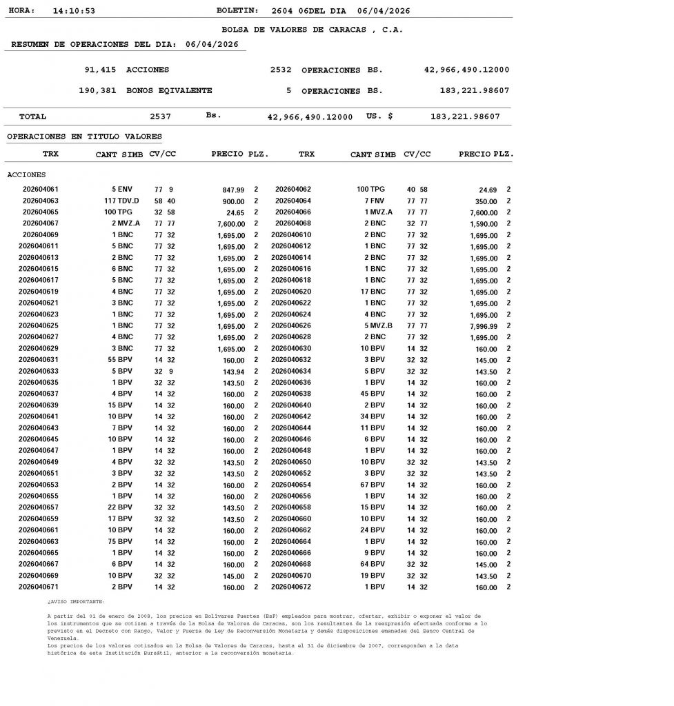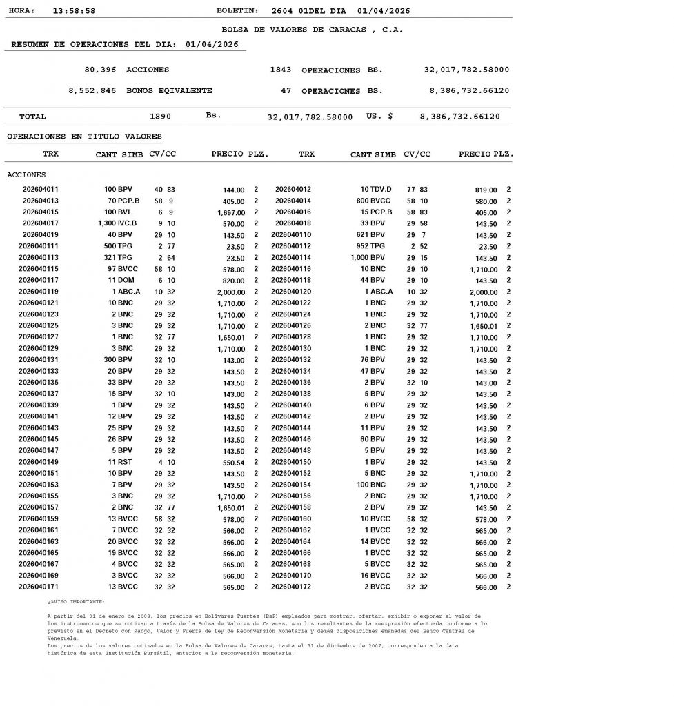 BOLETÍN DE OPERACIONES CORRESPONDIENTE 06/04/2026 Y 01/04/2026
