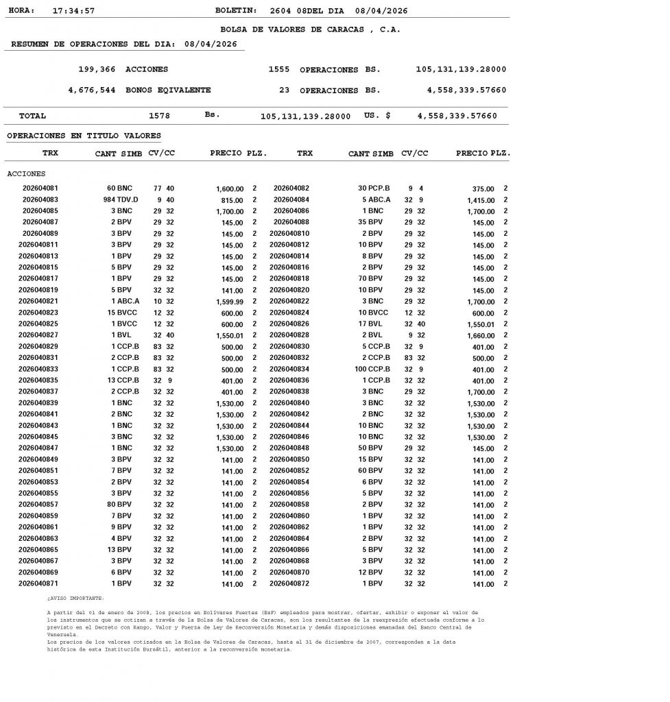 BOLETÍN DE OPERACIONES CORRESPONDIENTE “07/04/2026” y “08/04/2026”