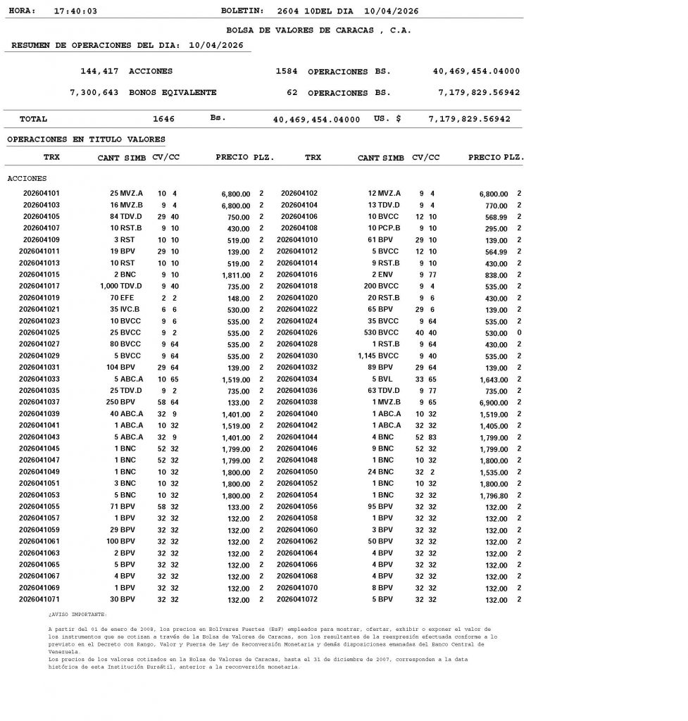 BOLETÍN DE OPERACIONES CORRESPONDIENTE “10/04/2026” y “09/04/2026”