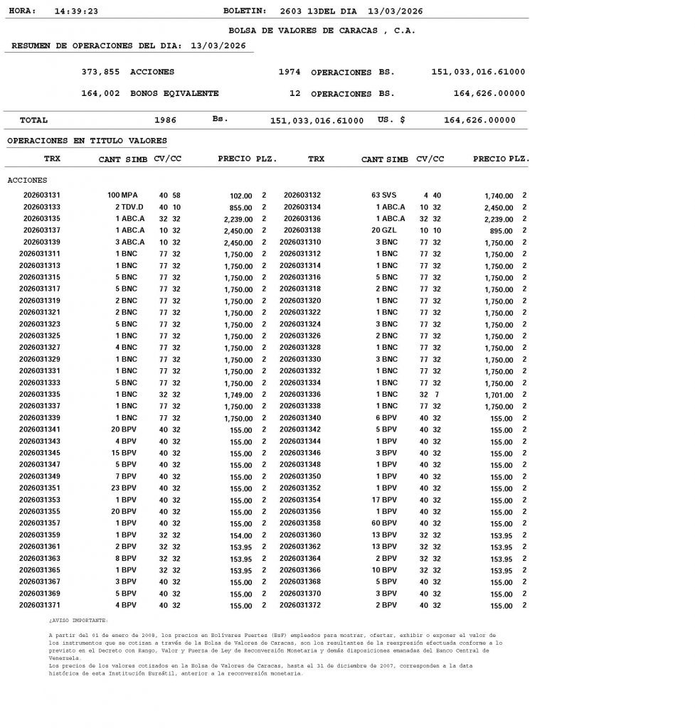 BOLETÍN DE OPERACIONES CORRESPONDIENTE “13/03/2026”
