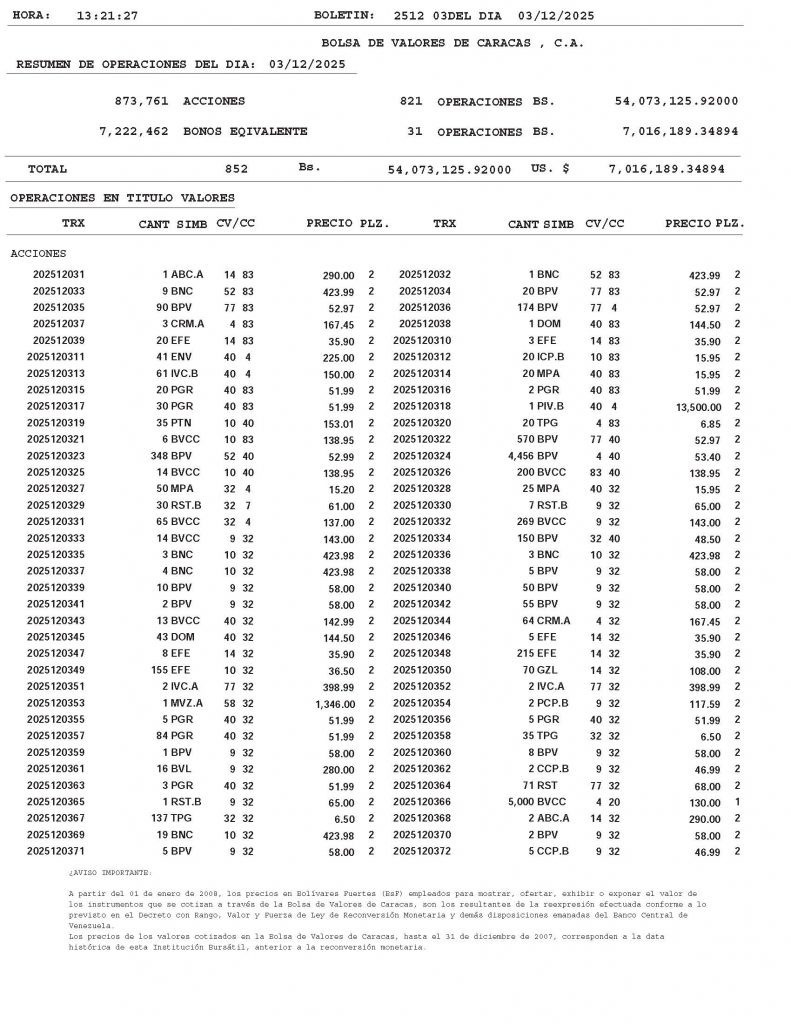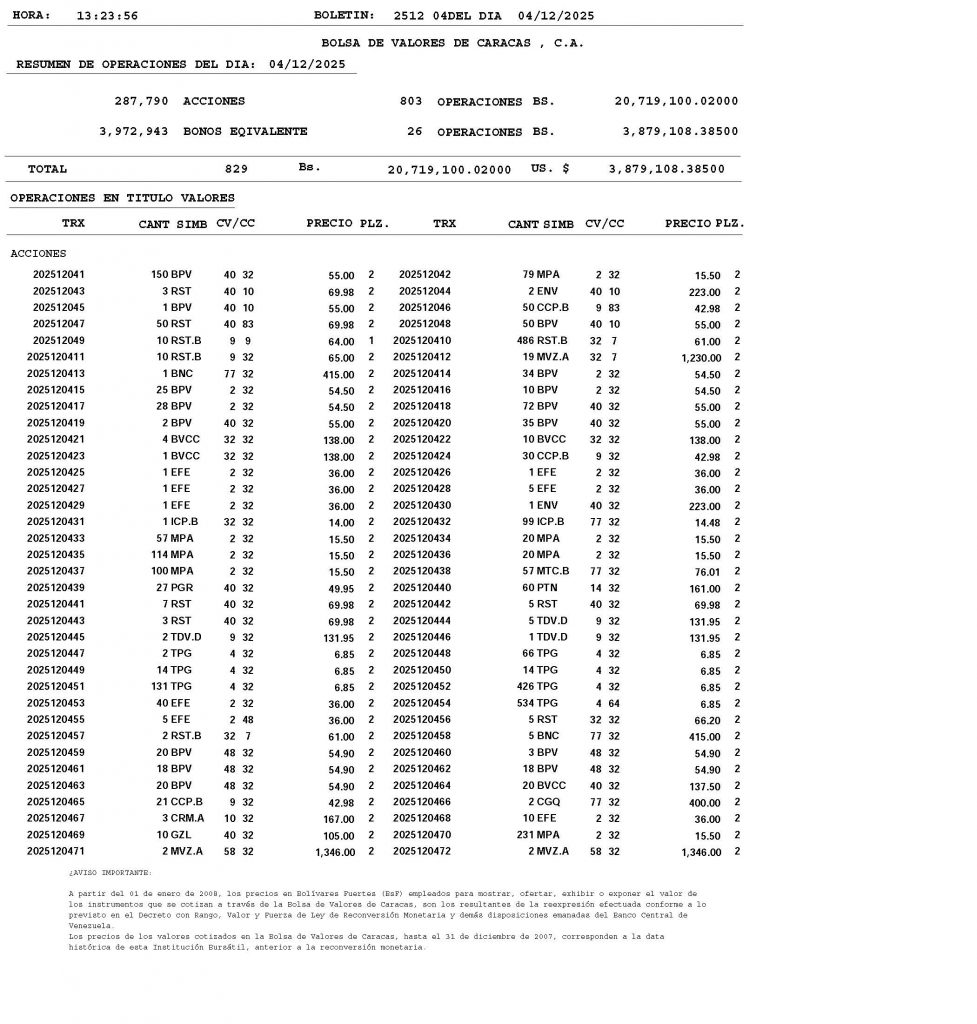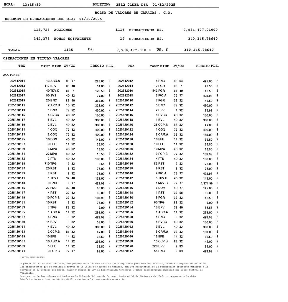 BOLETÍN DE OPERACIONES CORRESPONDIENTE AL “01/12/2025 y 05/12/2025″