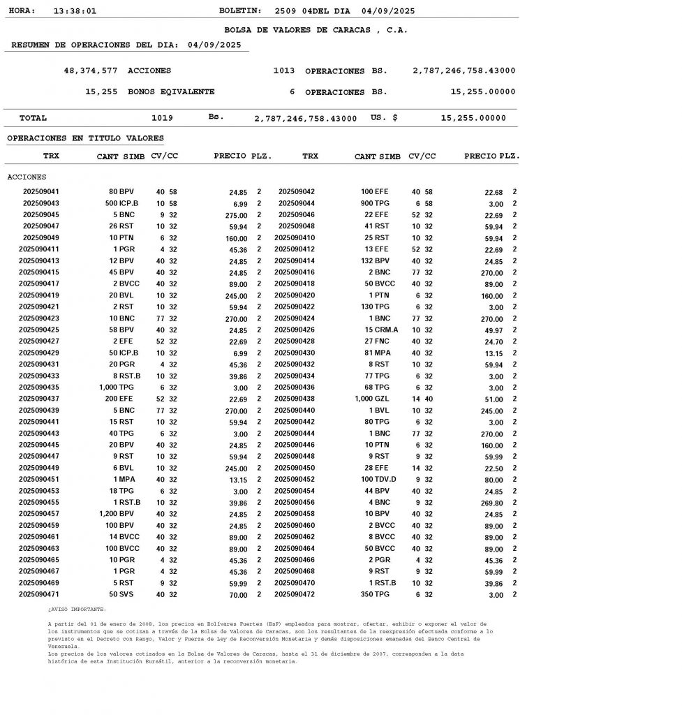 BOLETÍN DE OPERACIONES CORRESPONDIENTE AL “04/09/2025″