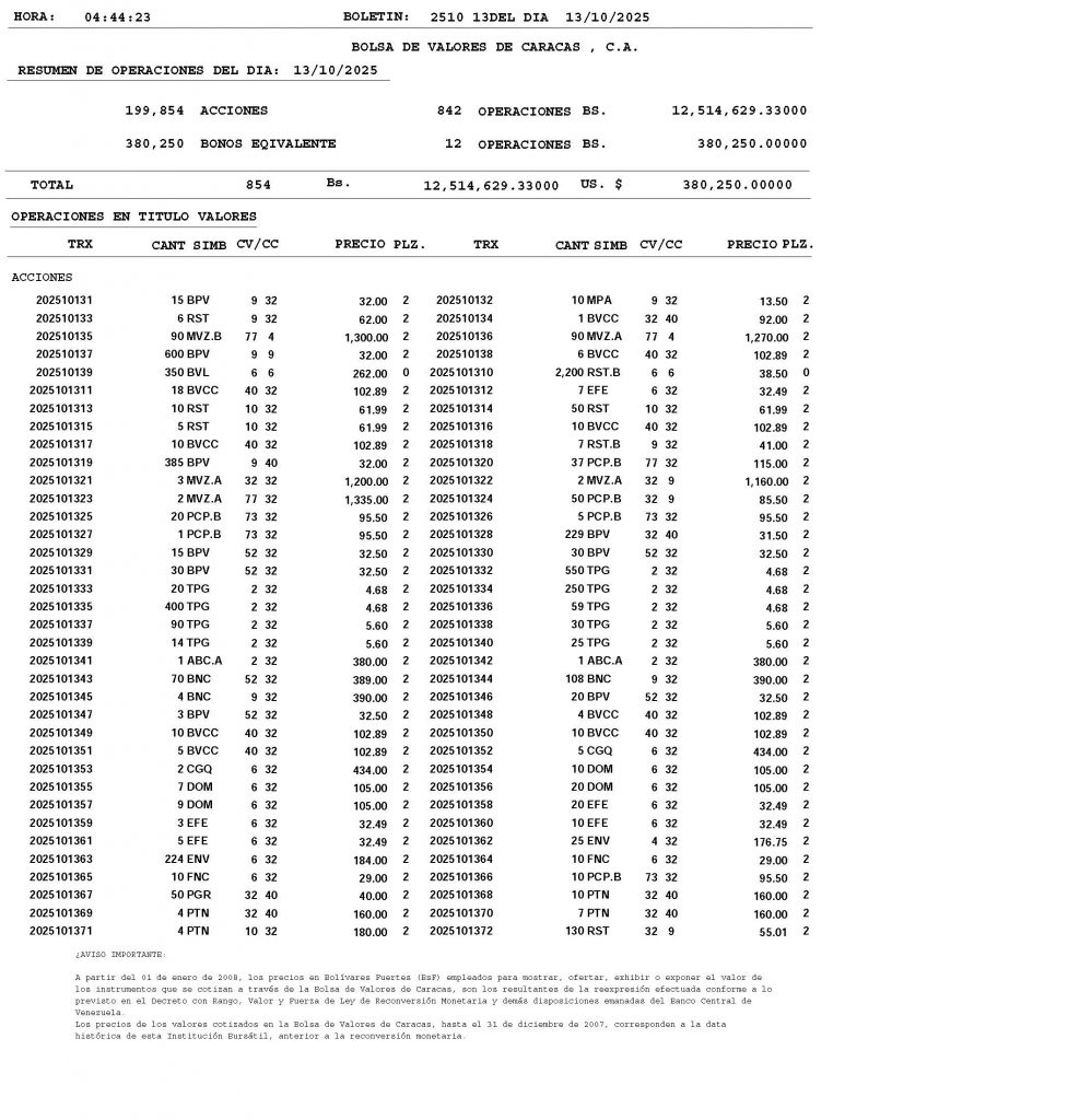 BOLETÍN DE OPERACIONES CORRESPONDIENTE AL “14/10/2025″ Y “13/10/2025″