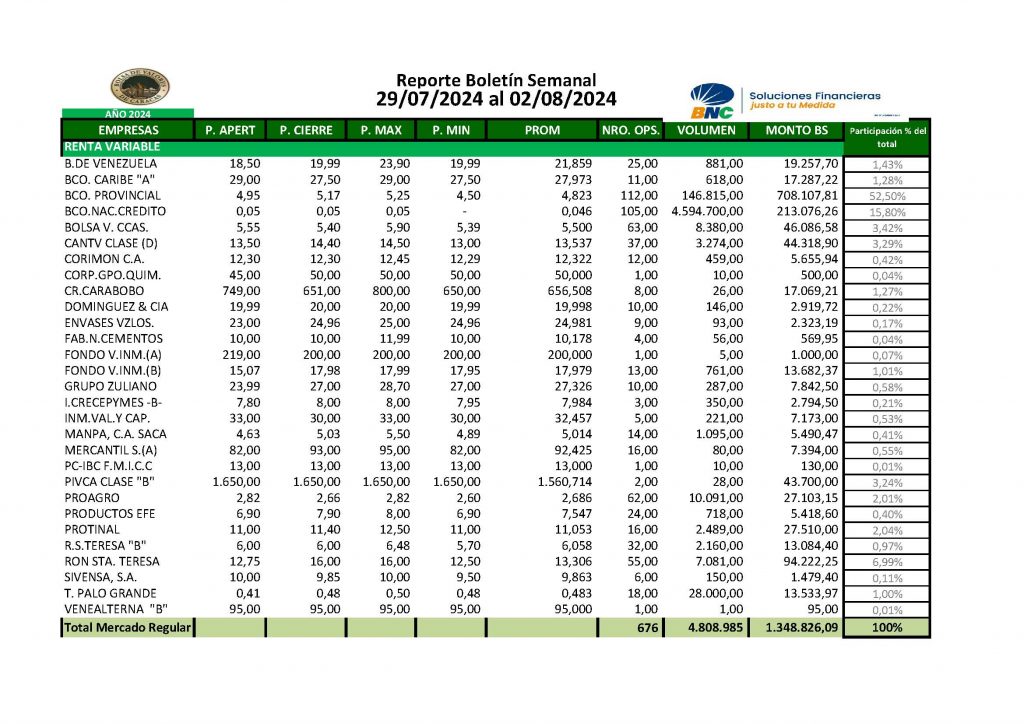 BOLETÍN EN CIFRAS SEMANAL CORRESPONDIENTE 29/07/2024 AL 2/08/2024