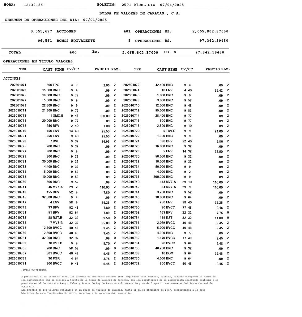 BOLSA DE VALORES DE CARACAS “BOLETÍN DE OPERACIONES 07012025”