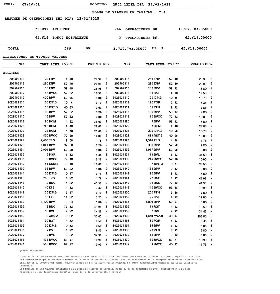 BOLSA DE VALORES DE CARACAS “BOLETÍN DE OPERACIONES 11022025