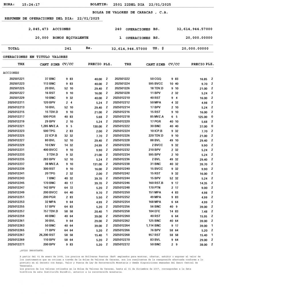 BOLSA DE VALORES DE CARACAS “BOLETÍN DE OPERACIONES 22012025”
