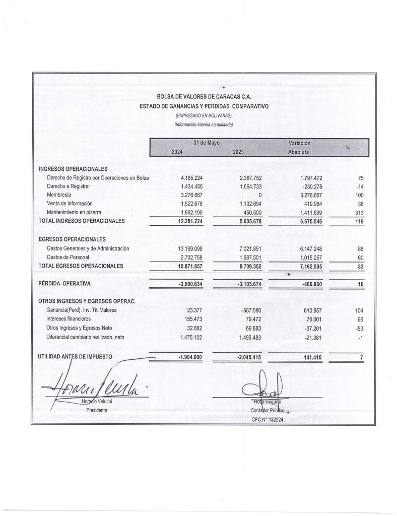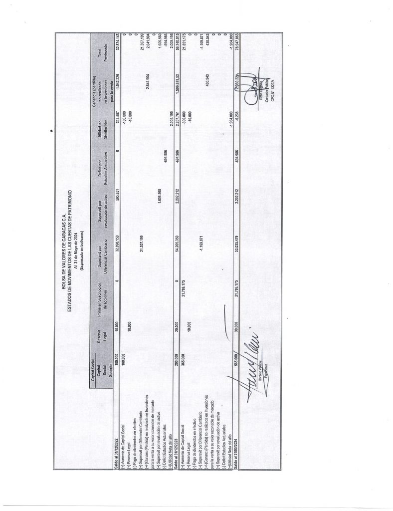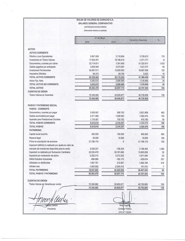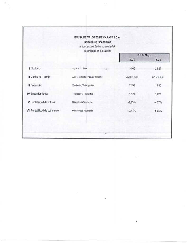 BOLSA DE VALORES DE CARACAS, C.A. INFORMACIÓN FINANCIERA NO AUDITADA MAYO 2024