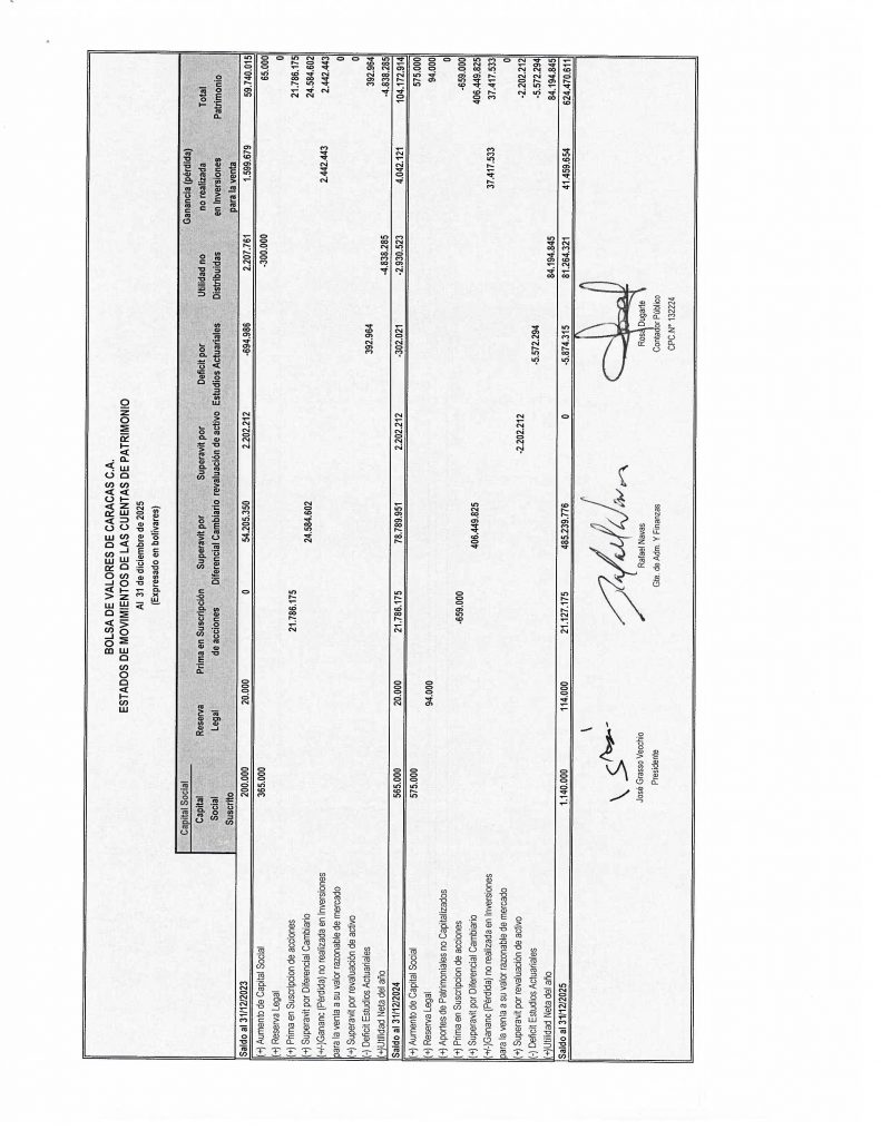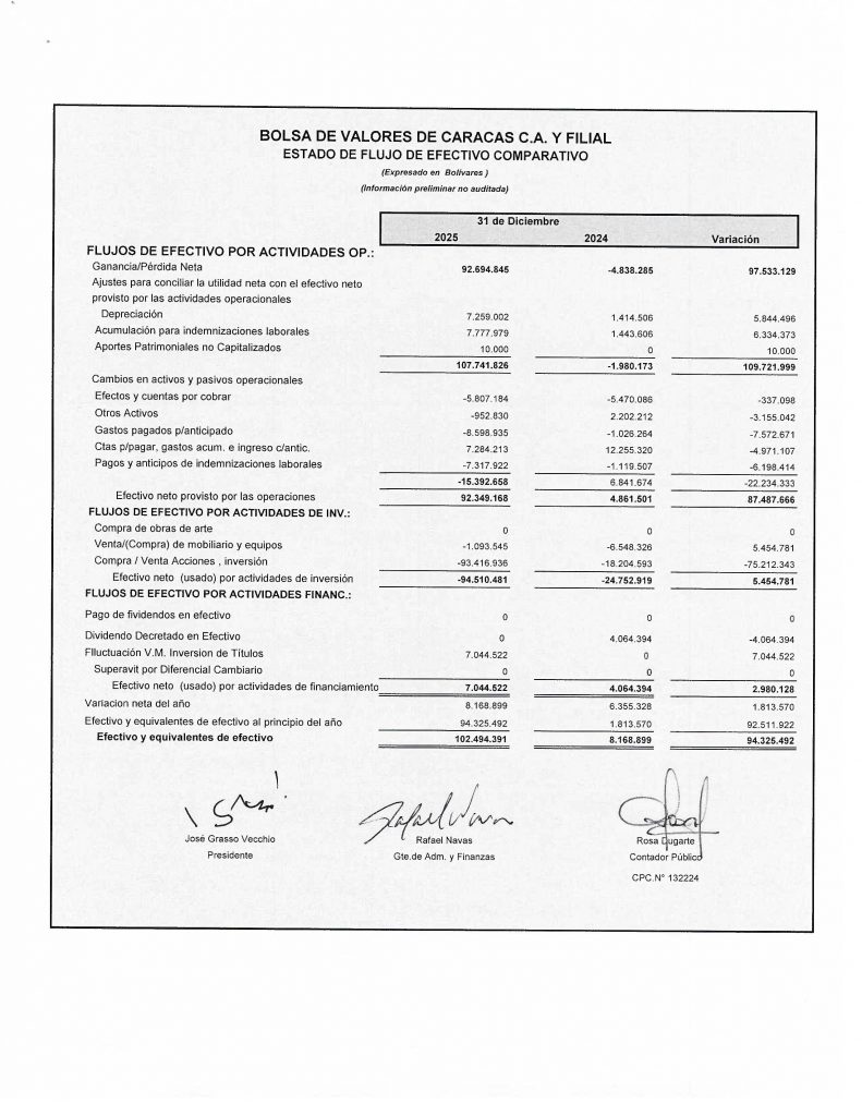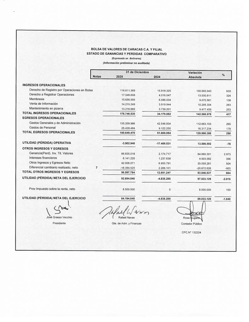 BOLSA DE VALORES DE CARACAS., ESTADOS FINANCIEROS, MENSUAL DICIEMBRE 2025 Vs 2024