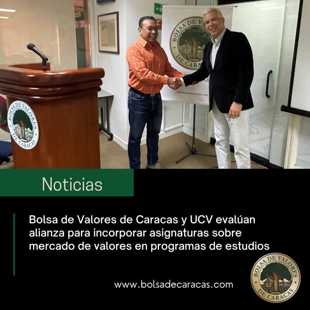 Con el interés de establecer vínculos y convenios académicos entre la Universidad Central de Venezuela y la Bolsa de Valores de Caracas, el Decano de la Facultad de Ciencias Económicas y Sociales (FACES UCV), Ángel Reyes, visitó la sede de institución donde fue recibido por su presidente de la institución, Gustavo Pulido Medina, y el equipo gerencial.