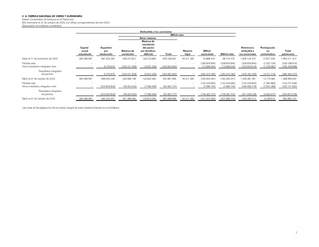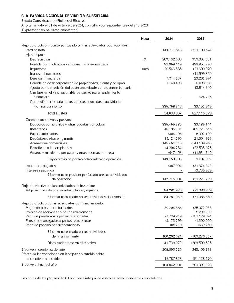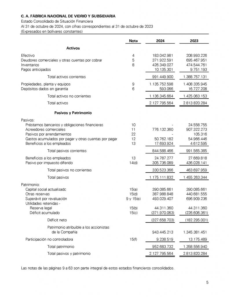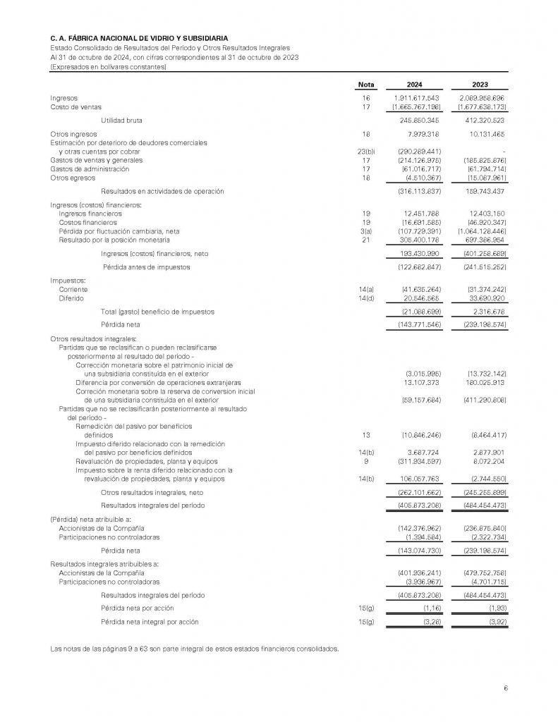 C.A. FÁBRICA NACIONAL DE VIDRIO Y SUBSIDIARIA INFORMACIÓN FINANCIERA AUDITADA AL 31 DE OCTUBRE 2024-2023