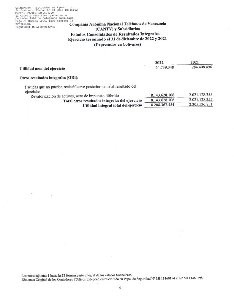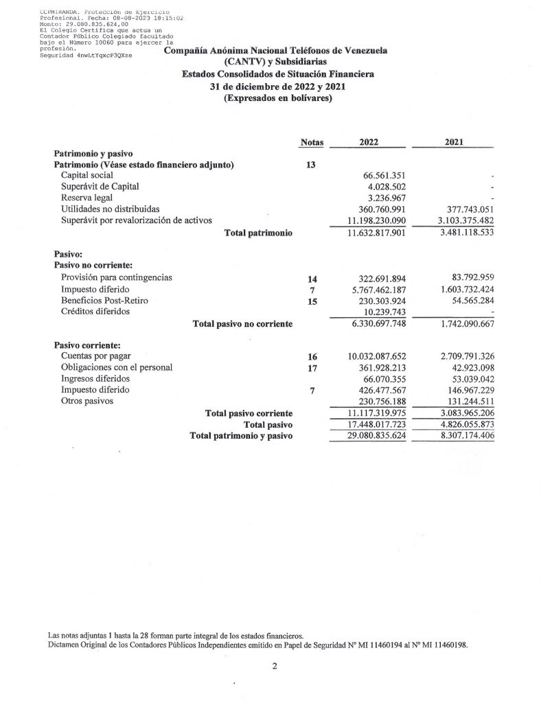 INFORMACIÓN FINANCIERA Empresa Emisora Cantv Diciembre 2022-2021 by Jose Coluccio on Scribd