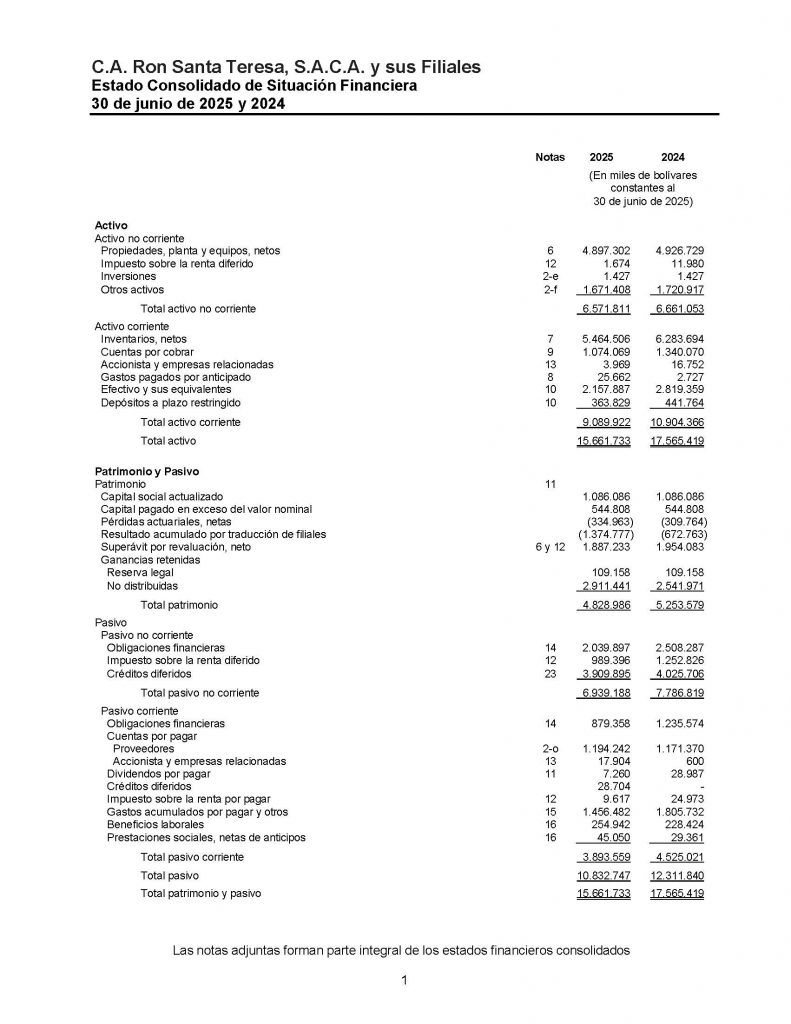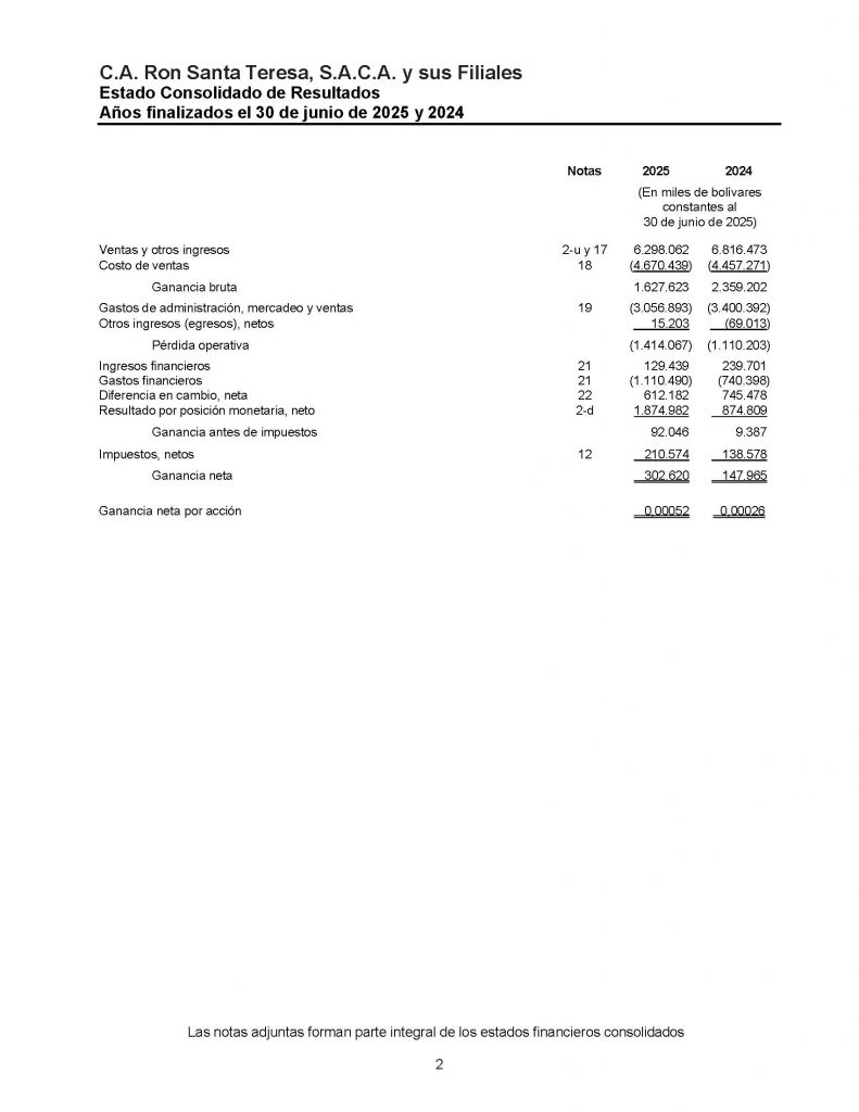 ESTADO CONSOLIDADO DE SITUACIÓN FINANCIERA AL 30 DE JUNIO DE 2025, ESTADO CONSOLIDADO DE RESULTADOS, ESTADO CONSOLIDADO DE OTROS RESULTADOS INTEGRALES, ESTADO CONSOLIDADO DE CAMBIOS EN EL PATRIMONIO Y ESTADO CONSOLIDADO DE FLUJOS DE EFECTIVO AÑO FINALIZADO EL 30 DE JUNIO DE 2025-2024