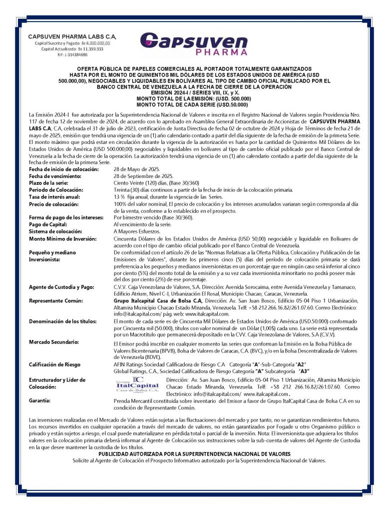 | Emisor | CAPSUVEN PHARMA LABS, C. A. |