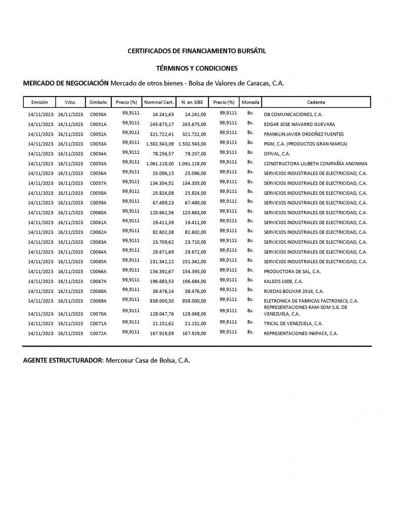 | 14/11 | 16/11 | C0054A | 99,9111 | 78.256,57 | 78.257,00 | 99,9111 | Bs. | ||