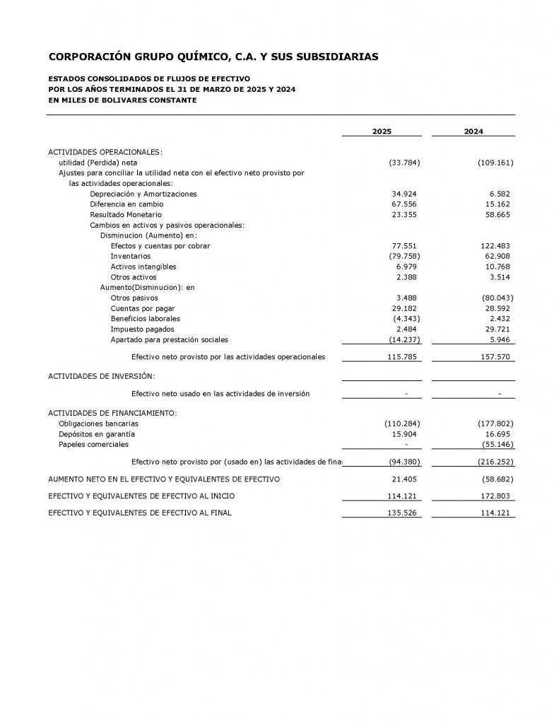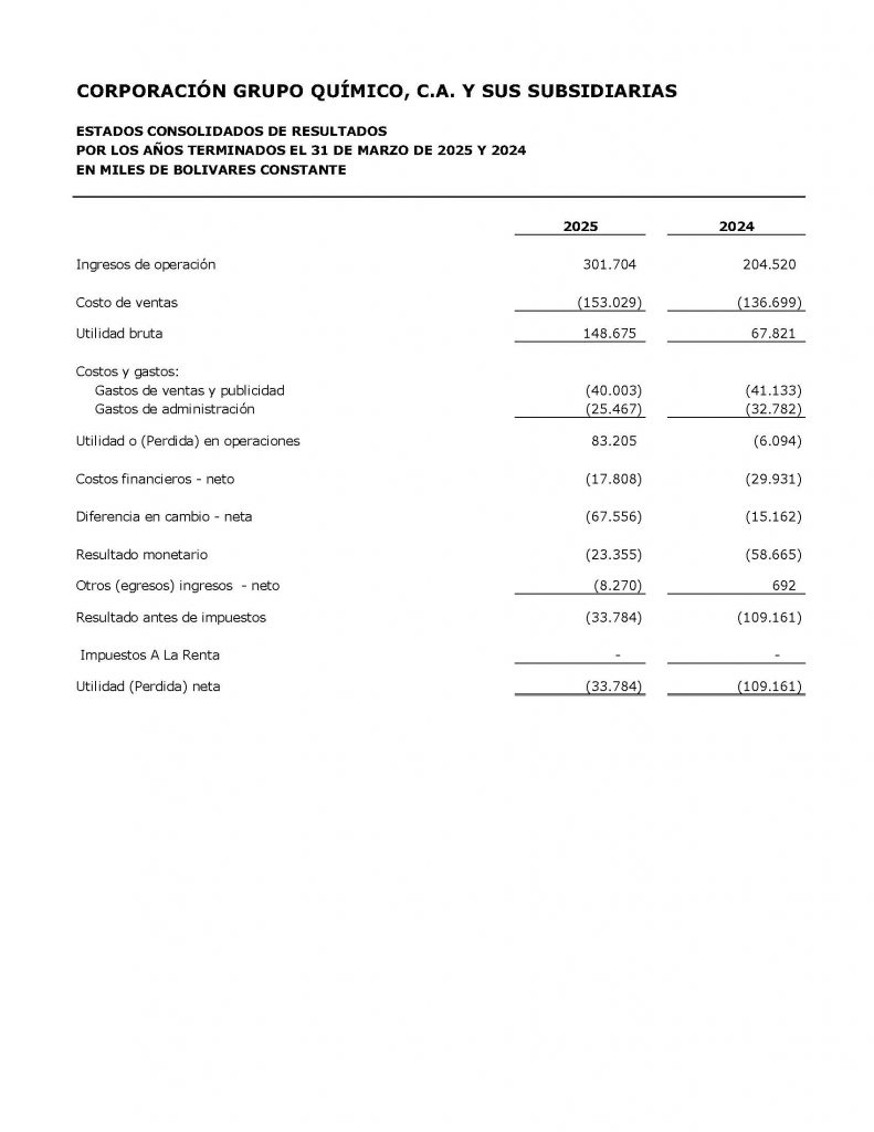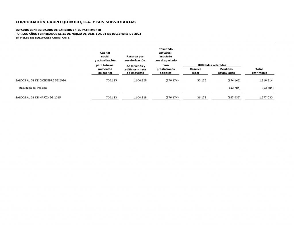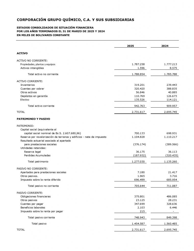 CORPORACIÓN GRUPO QUIMICO CA., INFORMACIÓN FINANCIERA TRIMESTRAL NO AUDITADOS CORRESPONDIENTE AL 31 DE MARZO 2025-2024