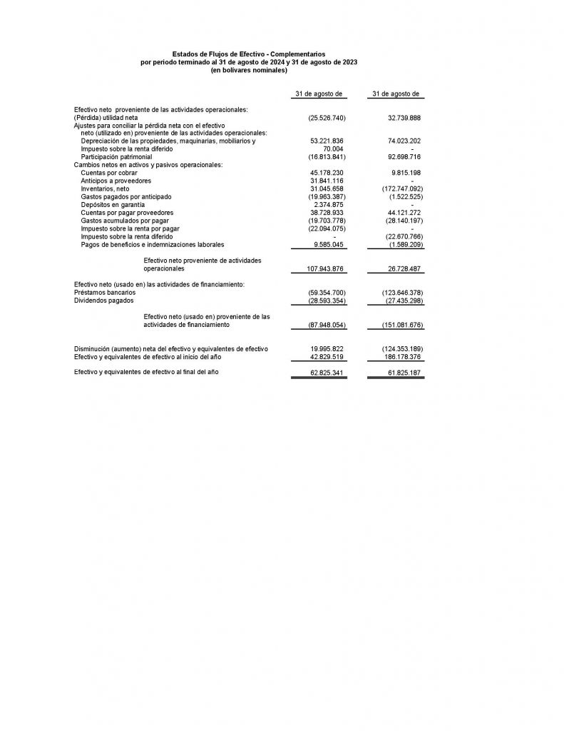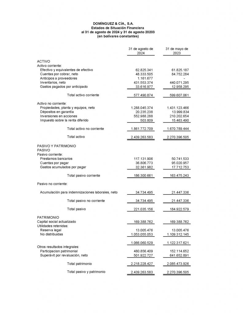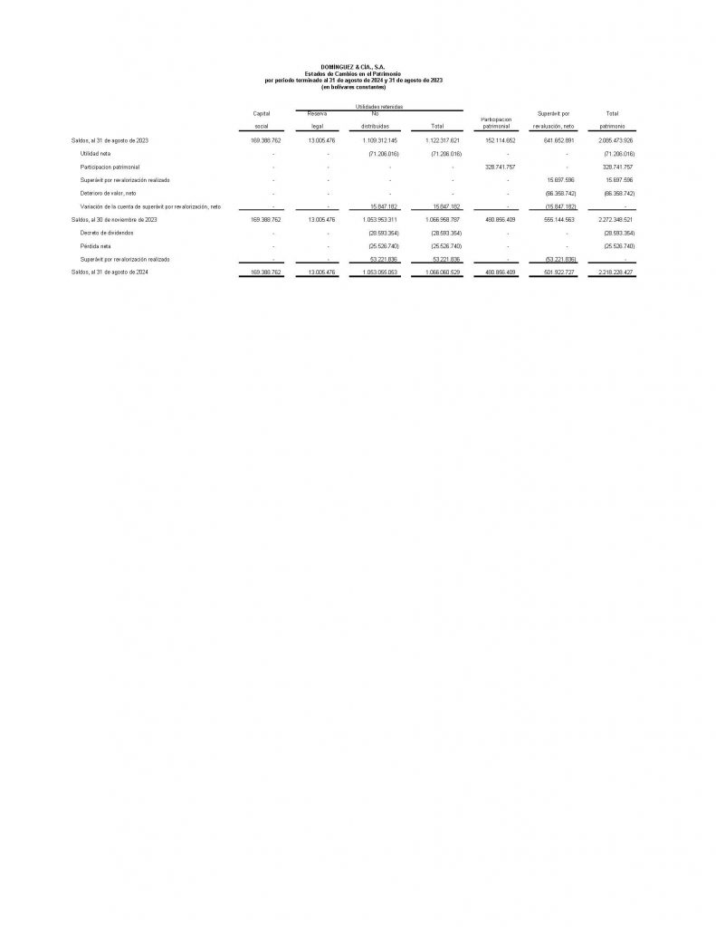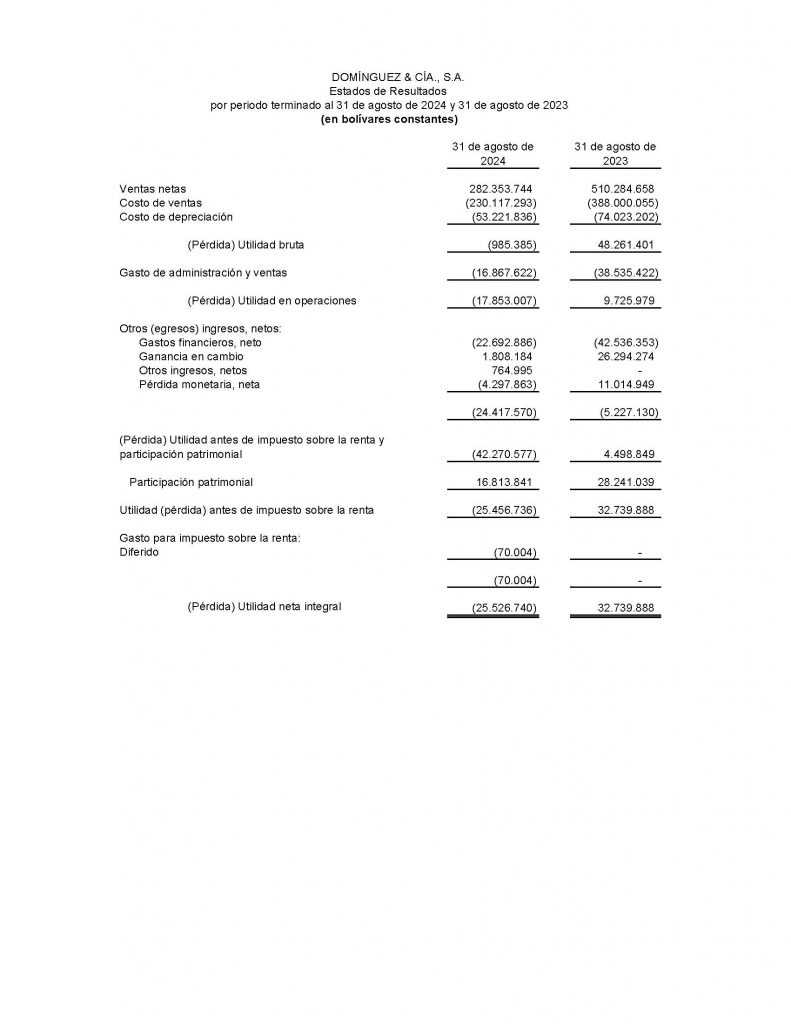 DOMINGUEZ & CIA, S.A., INFORMACIÓN FINANCIERA TRIMESTRAL AL 31 AGOSTO 2024-2023 (No Auditada)