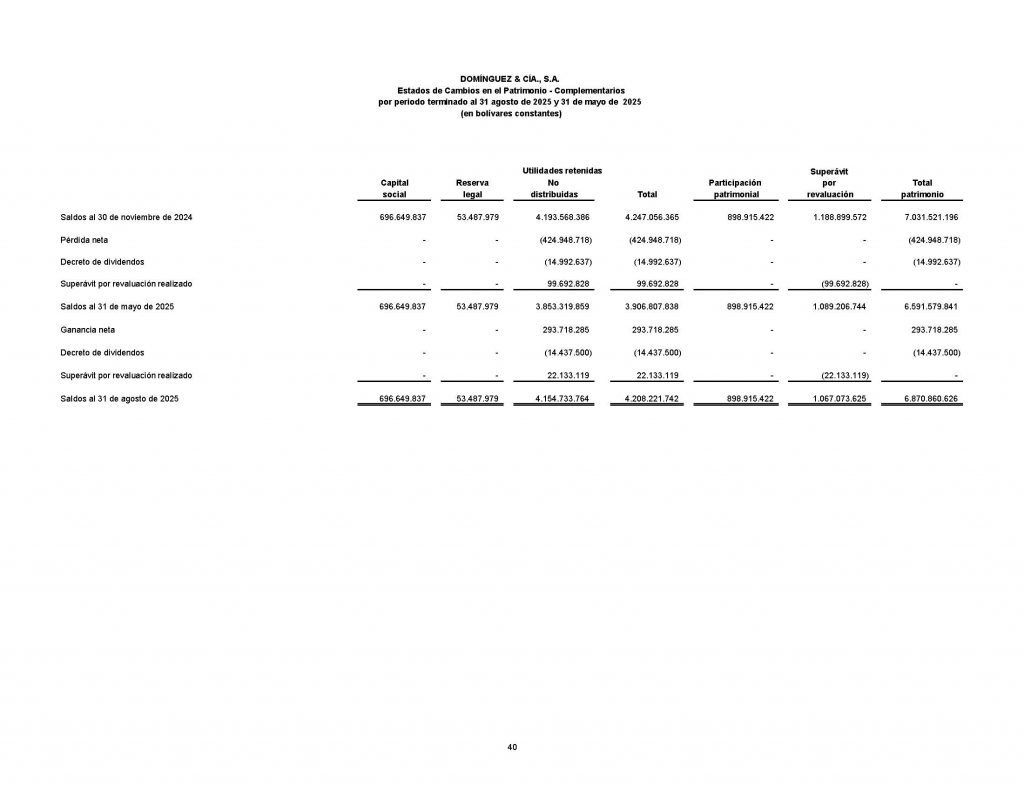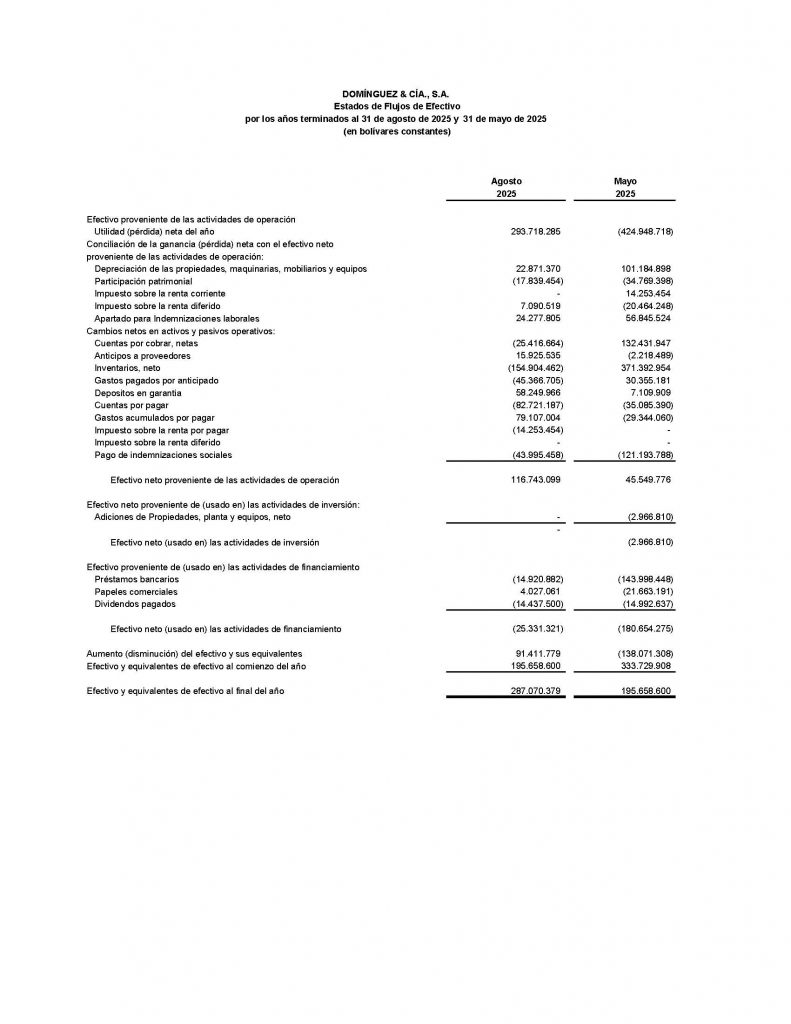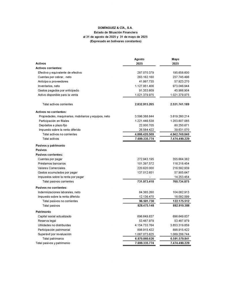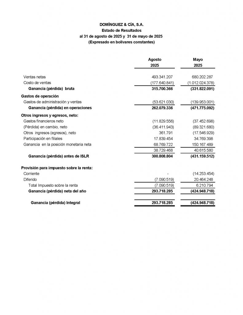 DOMINGUEZ & CIA, S.A., INFORMACIÓN FINANCIERA TRIMESTRAL AL 31 AGOSTO 2025 (No Auditada)