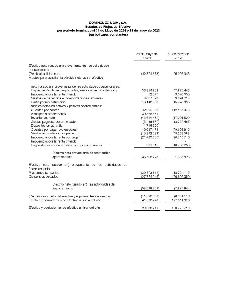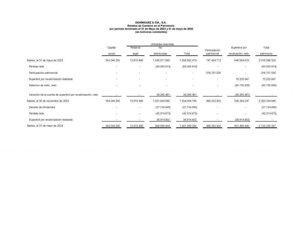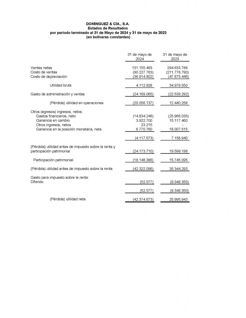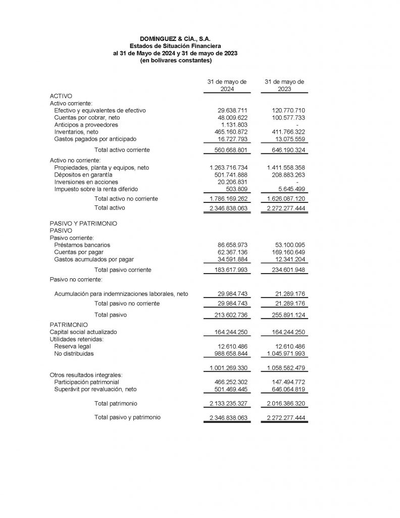DOMINGUEZ & CIA, S.A., INFORMACIÓN FINANCIERA TRIMESTRAL AL 31 MAYO 2024-2023 (No Auditada)