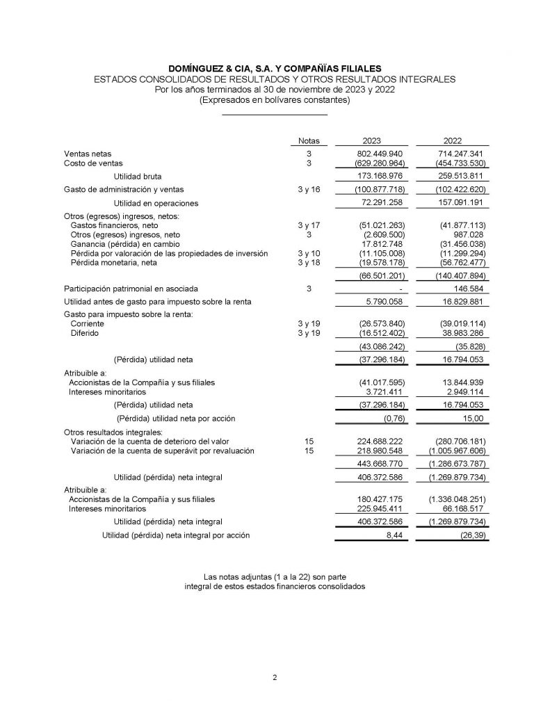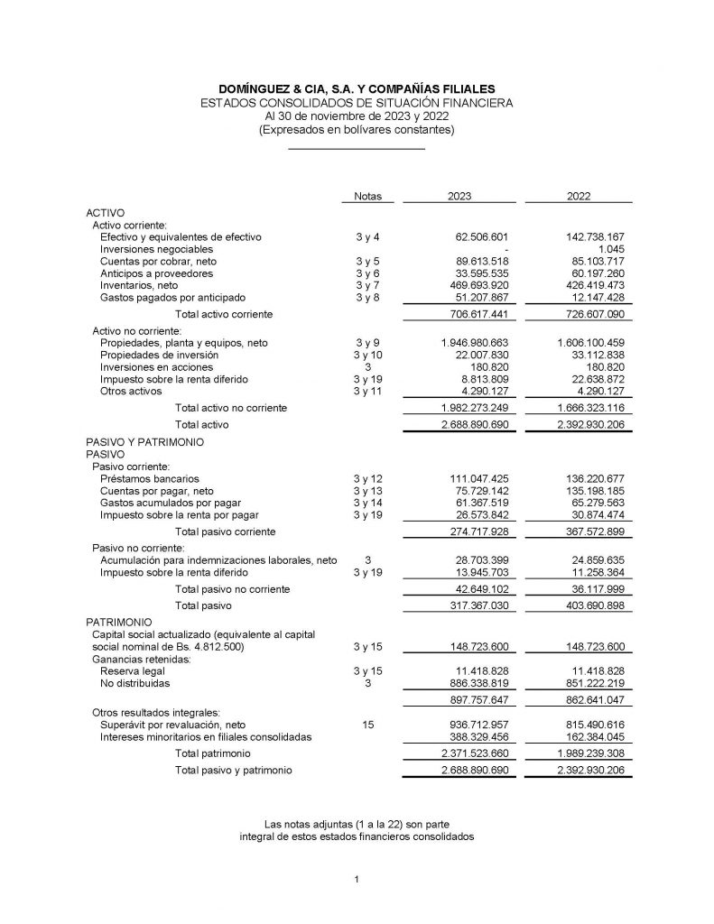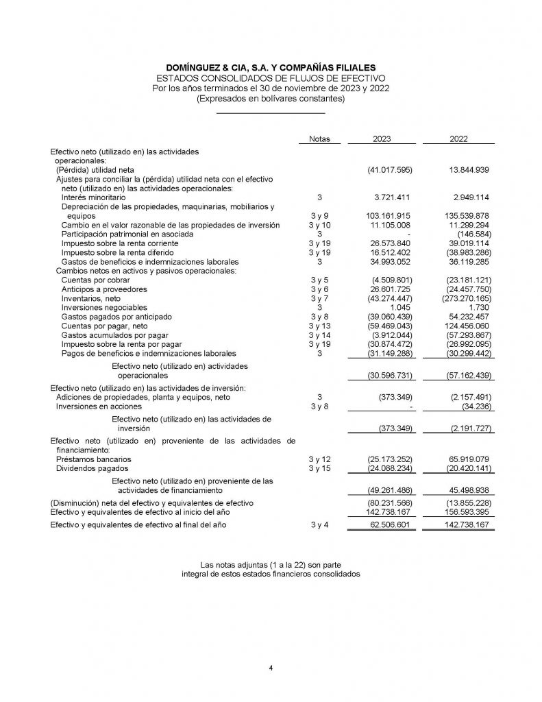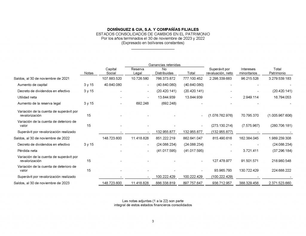 INFORMACIÓN FINANCIERA ESTADOS CONSOLIDADOS DE SITUACIÓN FINANCIERA, ESTADOS CONSOLIDADOS DE RESULTADOS Y OTROS RESULTADOS INTEGRALES, ESTADOS CONSOLIDADOS DE CAMBIOS EN EL PATRIMONIO Y ESTADOS CONSOLIDADOS DE FLUJOS DE EFECTIVO CORRESPONDIENTE A NOVIEMBRE 2023-2022