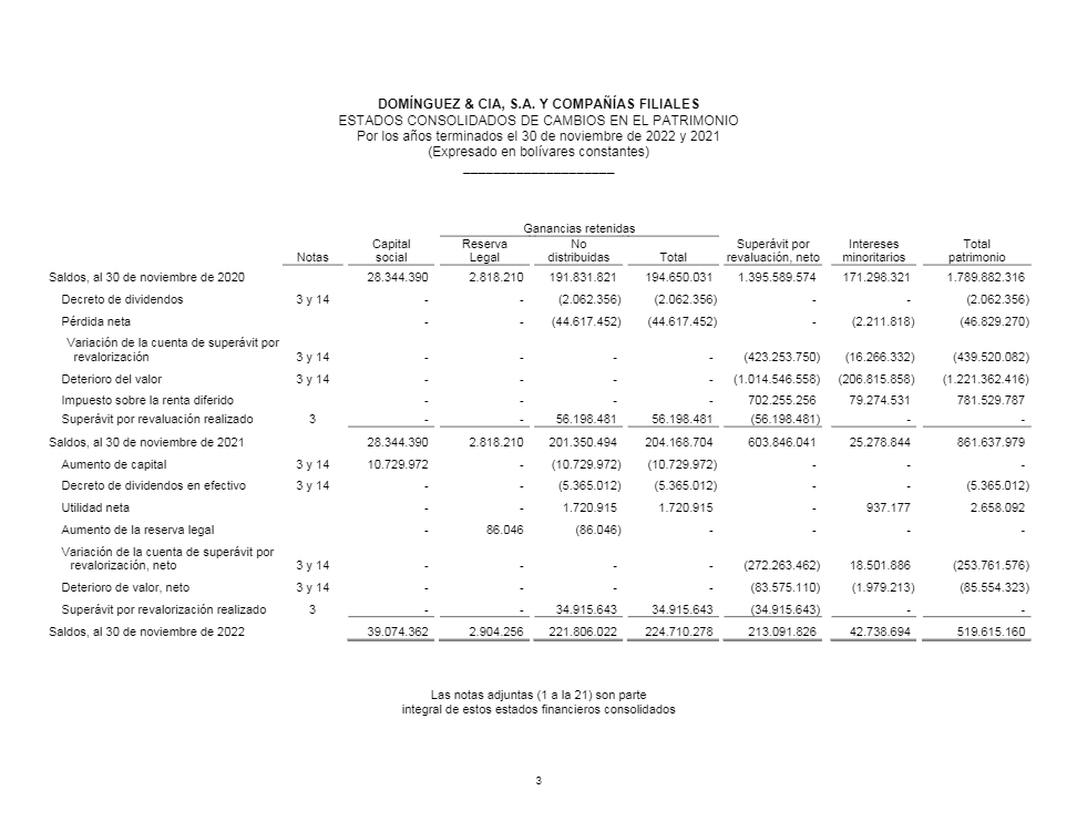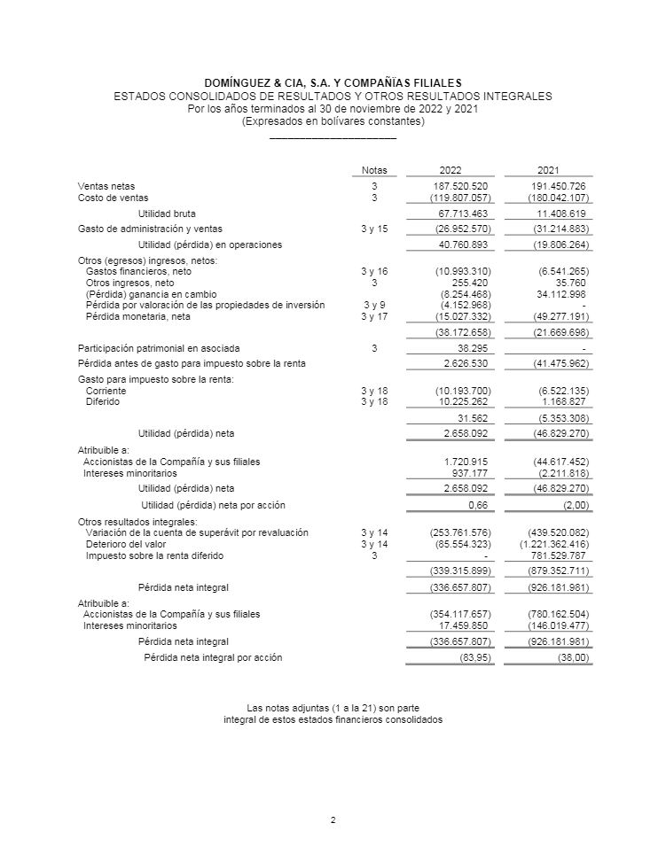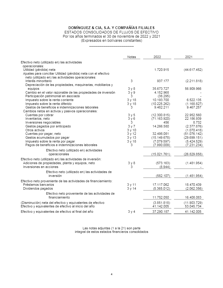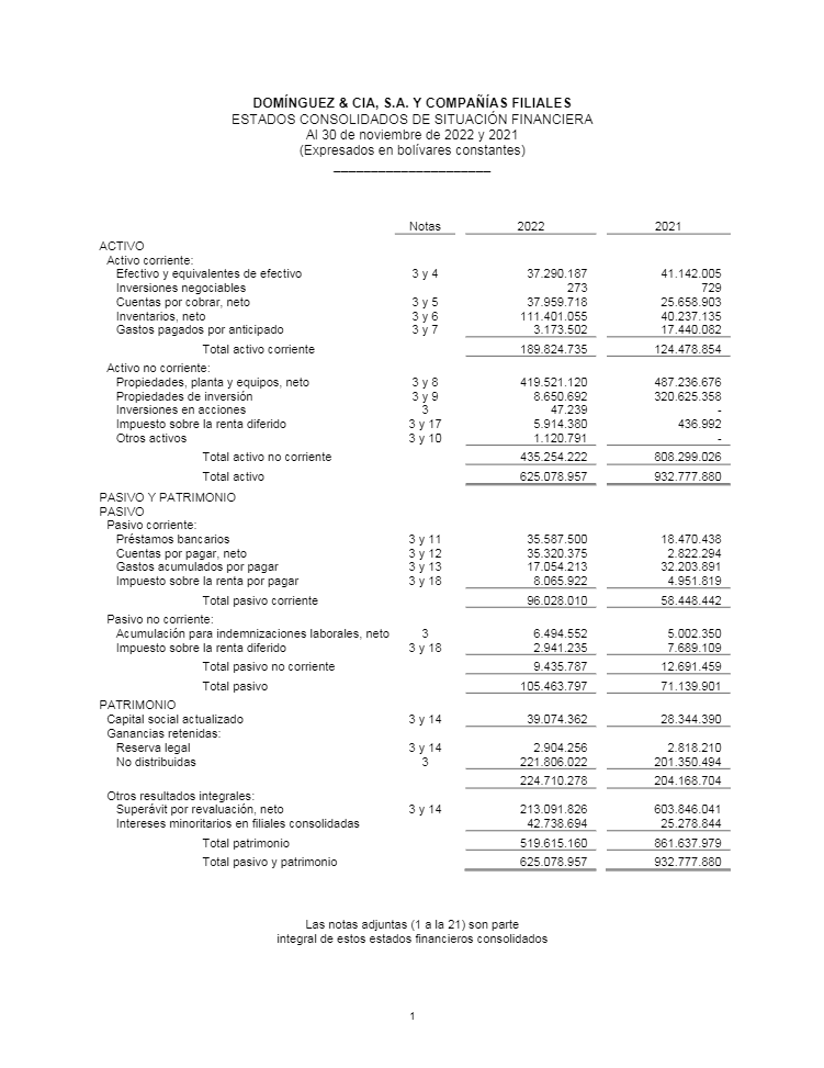 DOMINGUEZ & CIA, SA Y COMPAÑIAS FILIALES INFORMACIÓN FINANCIERA NOVIEMBRE 2022 (Auditado)