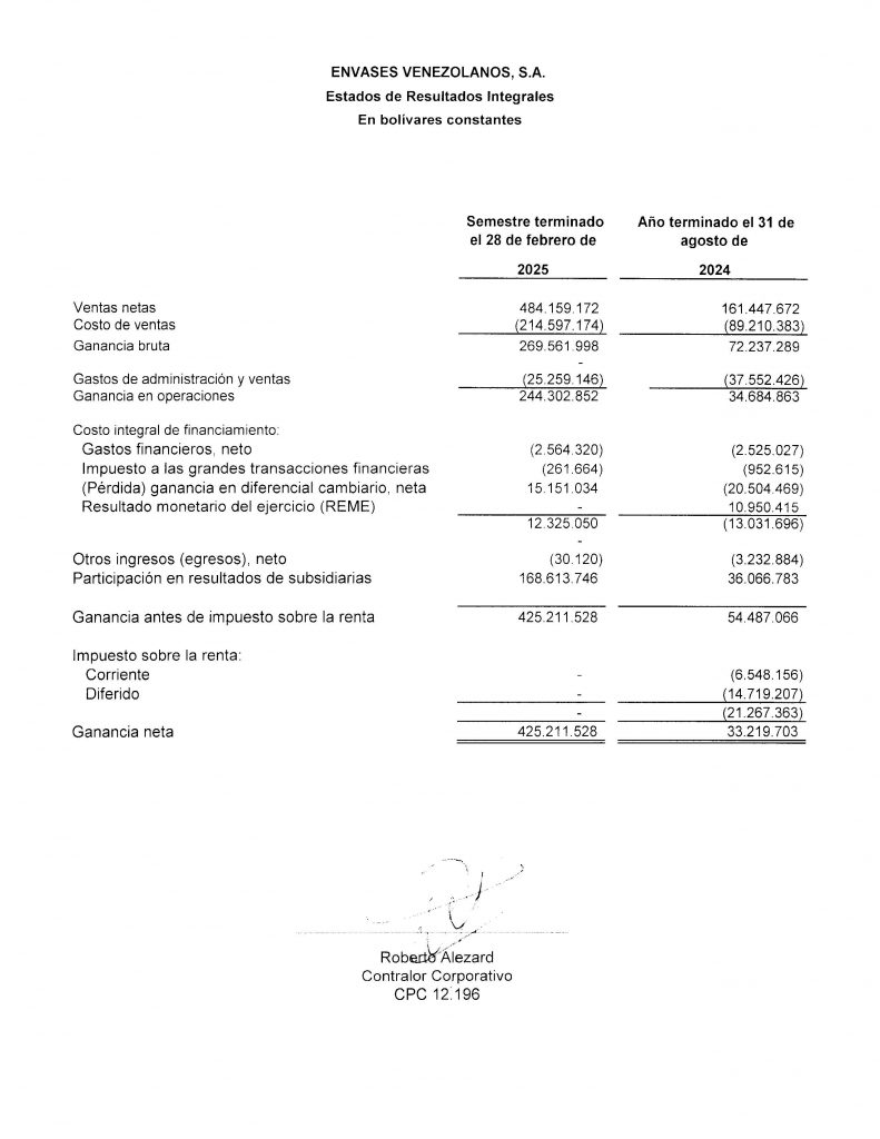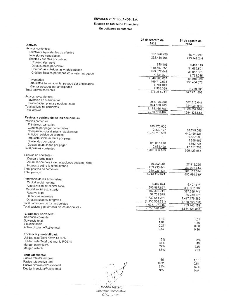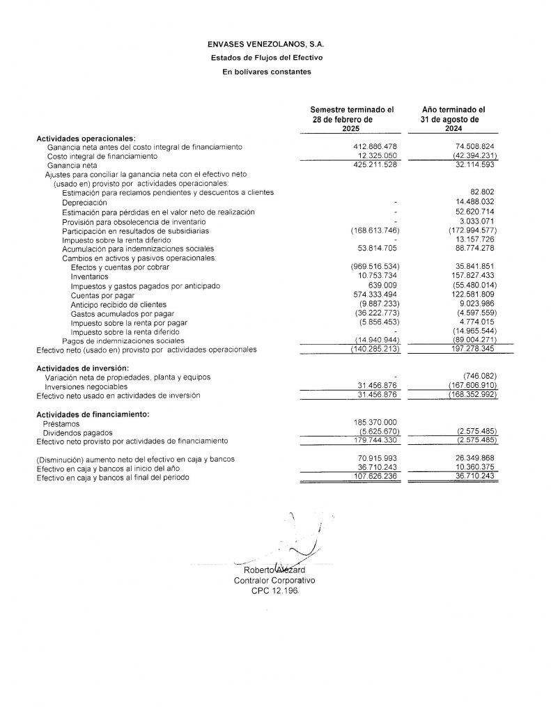 ESTADOS FINANCIEROS: Estados de Situación Financiera, Estados de Resultados Integrales al 28 de febrero de 2025 Vs 31 de Agosto 2024 y Estados de Movimiento de cuentas de Patrimonio de los Accionistas
