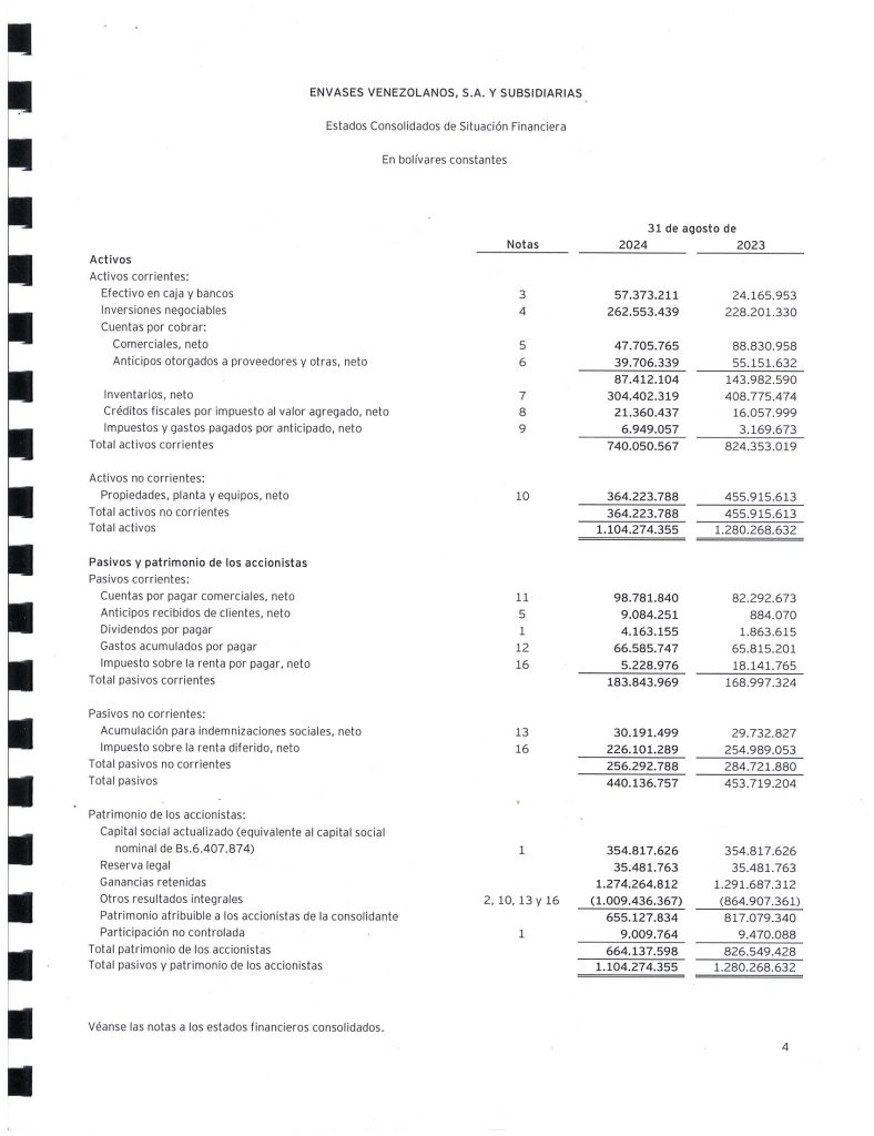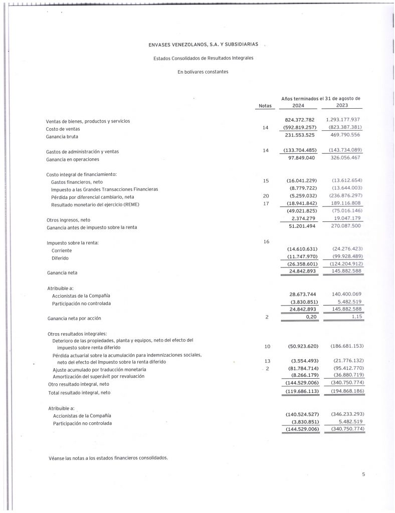ENVASES VENEZOLANOS, S.A., Y SUBSIDIARIAS INFORMACIÓN FINANCIERA AUDITADA AL 31 DE AGOSTO DE 2024 Y 31 DE AGOSTO DE 2023
