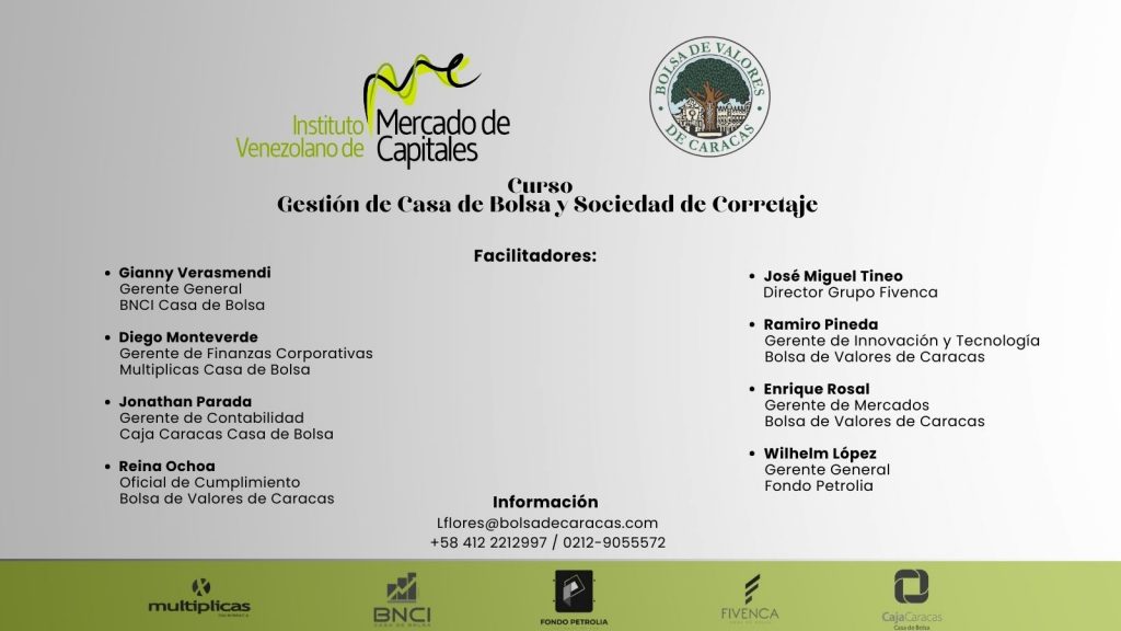 Información: lflores@bolsadecaracas.com o +58 412 2212997
