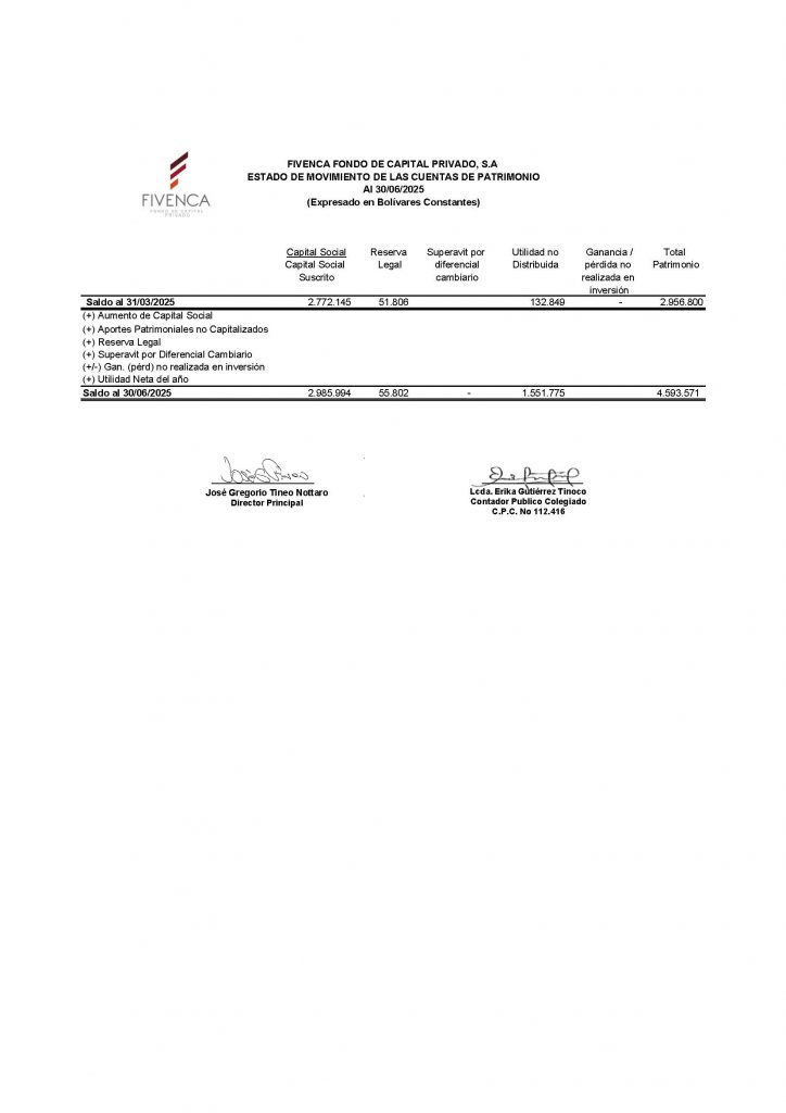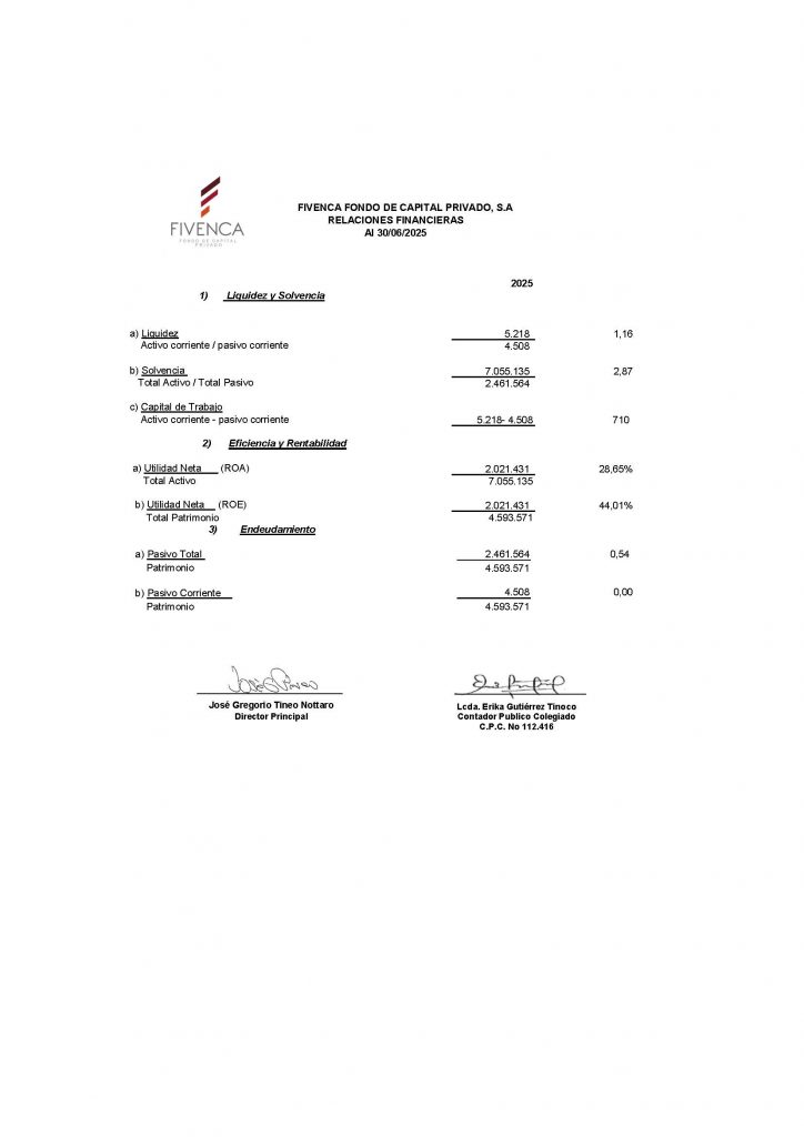 FIVENCA FONDO DE CAPITAL PRIVADO S.A. INFORMACIÓN FINANCIERA TRIMESTRAL (NO AUDITADO) JUNIO 2025
