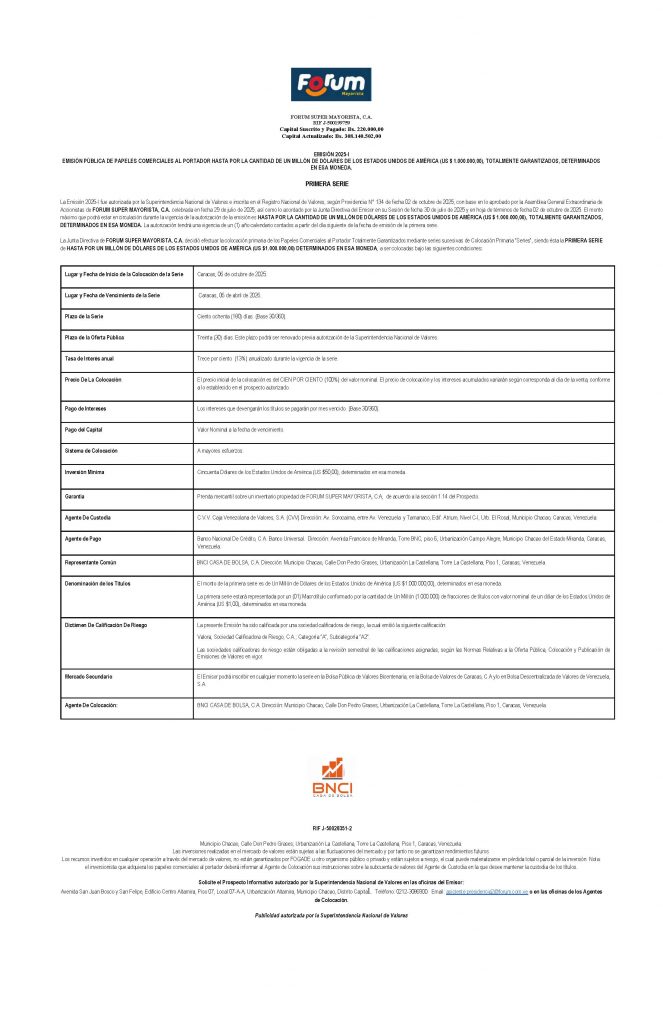 | Emisor | FORUM SUPER MAYORISTA, C.A. |