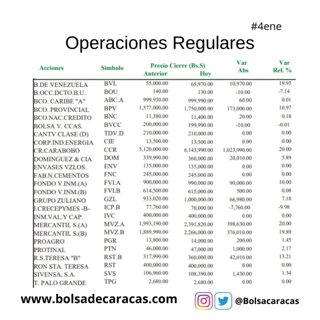 En el mercado a plazo se negociaron 24 mil 497 acciones por un monto de 3 mil 051 millones 926 mil 170 bolívares.