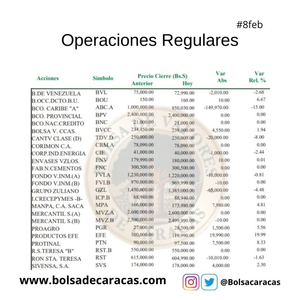 En el mercado a plazo se negociaron 13 mil 454 acciones por un monto de 9 mil 270 millones 882 mil 320 bolívares.