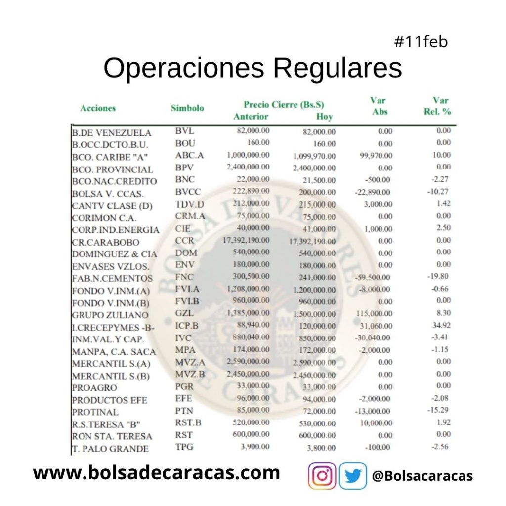 En el mercado a plazo se negociaron 29 mil 202 acciones por un monto de 6 mil 756 millones 545 mil 170 bolívares.