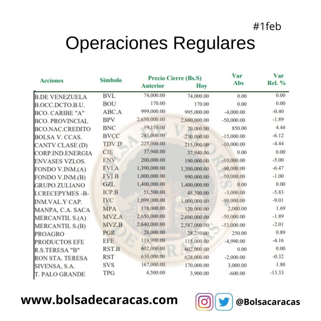 Se efectuaron en Bolsa 182 operaciones de compra y venta de acciones de las empresas inscritas en la pizarra de cotizaciones, en las cuales se transaron 124 mil 147 acciones por 29 mil 246 millones 768 mil 160 bolívares.