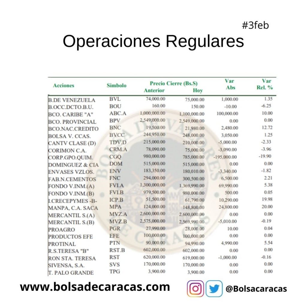 Se efectuaron en Bolsa 217 operaciones de compra y venta de acciones de las empresas inscritas en la pizarra de cotizaciones, en las cuales se transaron 22 millones 208 mil 578 acciones por 443 mil 525 millones 126 mil 540 bolívares.