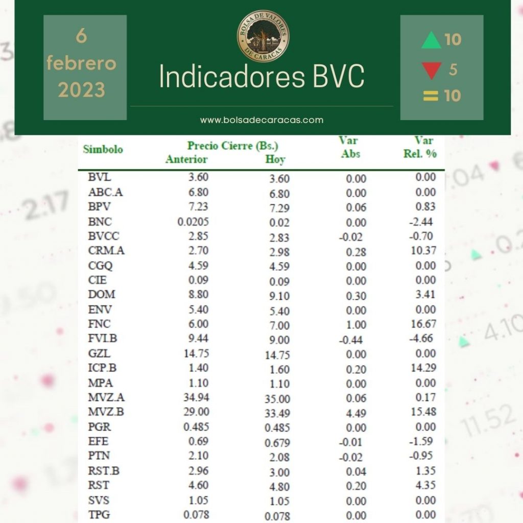 En el BVC Alternativo se concretaron negocios por un monto de 5 mil 250 bolívares, como resultado de la transacción de 150 acciones.