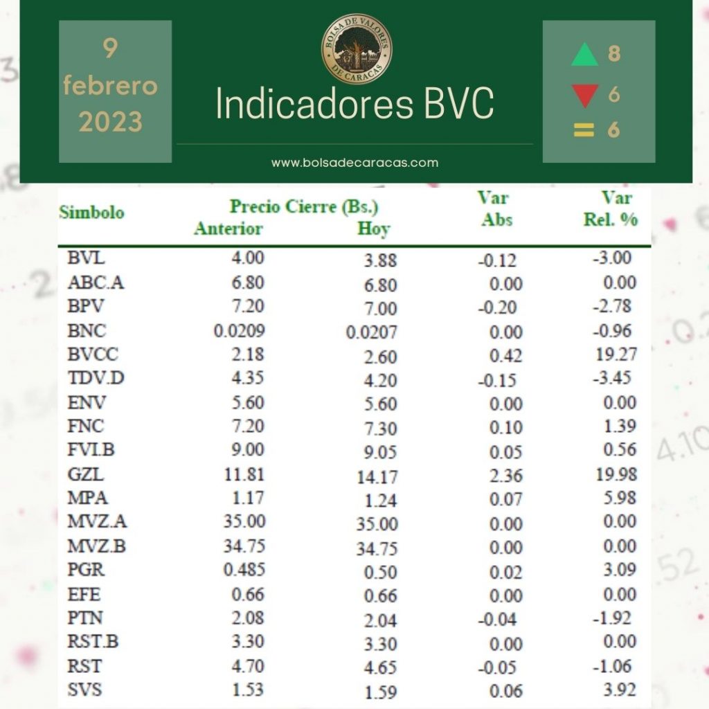 Se efectuaron 106 operaciones de compra/venta de acciones de las empresas inscritas en la pizarra de cotizaciones, en las cuales se transó 1 millón 311 mil 355 acciones por 650 mil 706 bolívares.