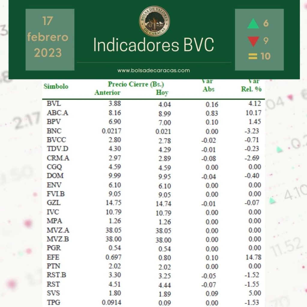El índice principal de la Bolsa de Valores de Caracas, el IBC, culminó este viernes en 27.860,01, con una variación de 12,42 puntos (-0,04%), con respecto a la sesión anterior.
